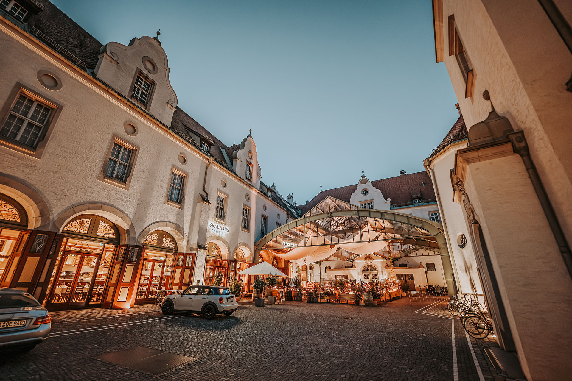 Bei traumhaftem, sonnigem Wetter in einen idyllischen Biergarten sitzen und köstliche Gerichte genießen – ein herrlicher Gedanke. Dieser Wunsch-Traum wird im Brauhaus am Schloss wahr: Große Bäume, zwitschernde Vögel und eine moderne bayerische Küche auf einer Terrasse, ein Garten mit Bierbankgarnituren und eine romantische Beleuchtung für den gemütlichen Abend laden zum Verweilen ein.