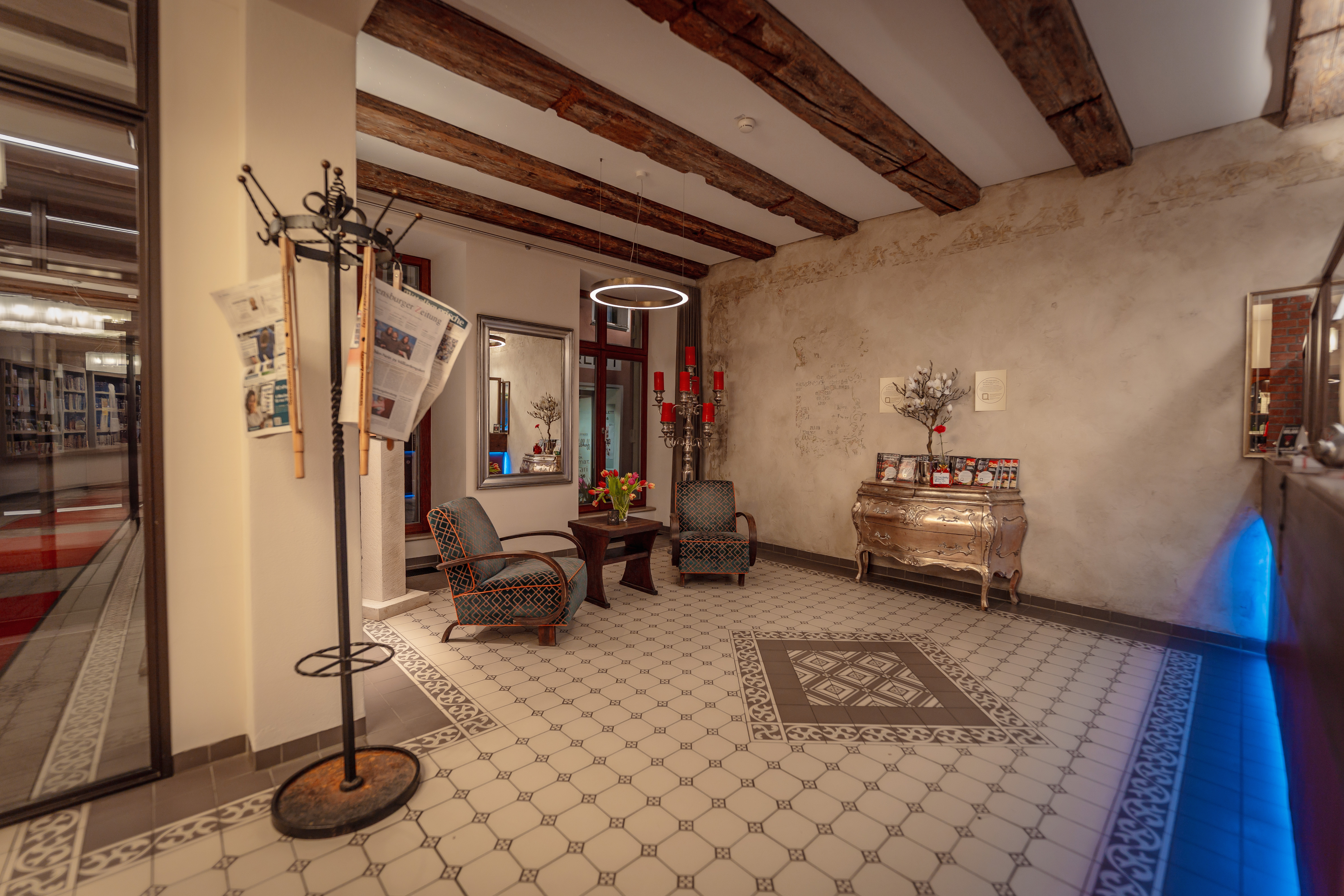 Das Gesamtkonzept des AltstadtQuartiers folgt dem Leitsatz: „Mehr als ein Hotel“. Die „Insel“, wie Inhaberin Kathrin Fuchshuber diesen Ort nennt, lädt zum Staunen und Verweilen ein. Ein Highlight des vielfältigen Ortes, ist die Druckwerkstatt, in der Gäste mehr über die Familiengeschichte erfahren können. Zudem bietet die „PINA – die kleine Pinakothek“ nicht nur eine angenehme Atmosphäre und eine energieeffiziente Beleuchtungstechnik, sondern auch Galerieschienen, um die Liebe zur Kunst zu unterstreichen. Ab Mai dieses Jahres wird hier eine Reminiszenz an die renommierte bildende Künstlerin Rita Karrer präsentiert. Im Innenhof der Pinakothek beeindruckt außerdem das zehn Meter hohe Wandgemälde der „MyLady Regensburg“.