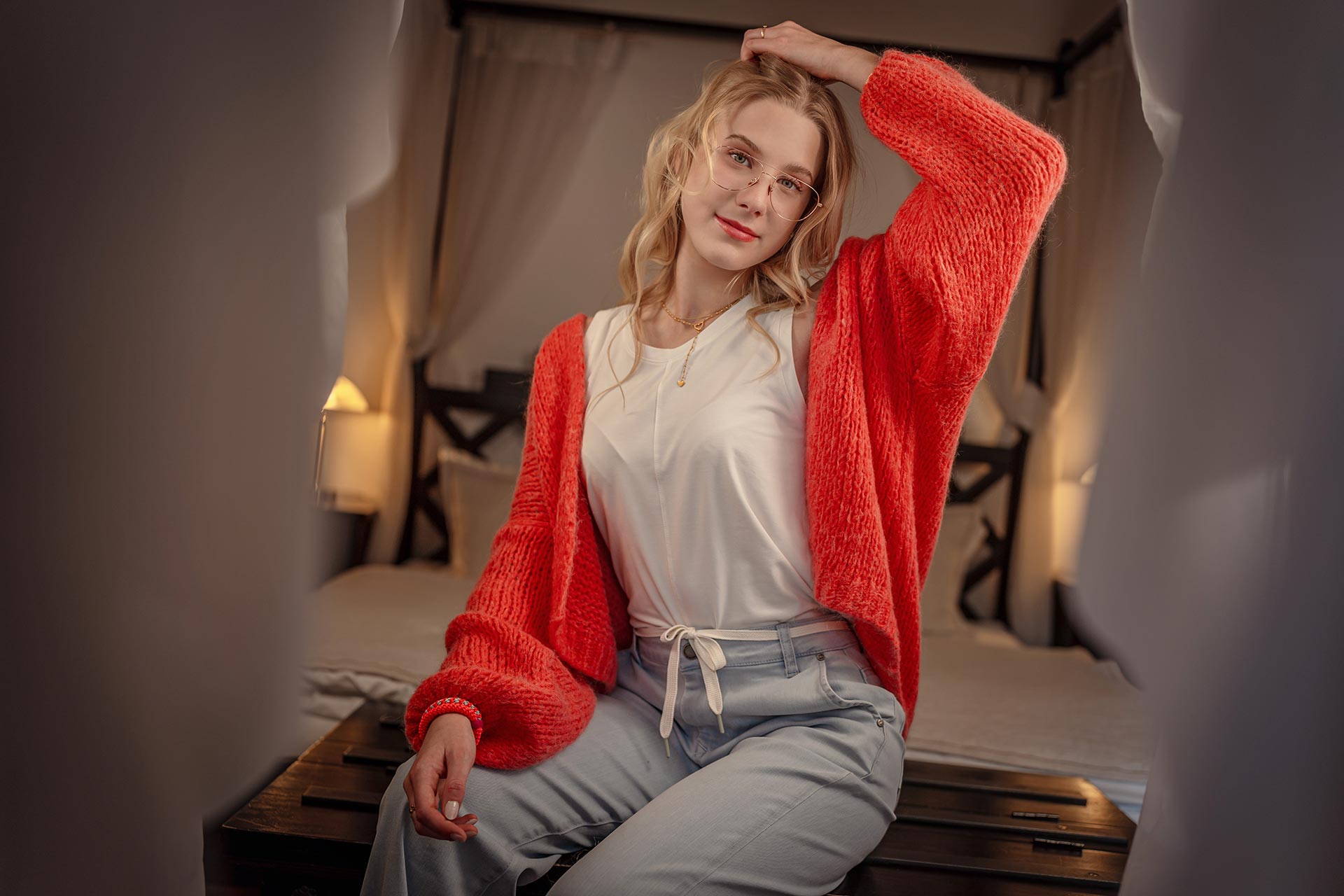 Wieso haben wir uns für einen farbigen Cardigan entschieden? Farben liegen derzeit auch voll im Trend! Man sieht farbige Hosenanzüge, Jacken, T-Shirts, Taschen, Schuhe … alles in verschiedenen Farben! Doch hier ist Vorsicht geboten, um am Ende nicht auszusehen, als wäre man in einen Farbtopf gefallen! Am besten kombiniert man die bunten Pieces mit einem neutralen Outfit. So haben wir es auch gemacht. Unser IT-Piece kommt in einem typischen hellen Jeansblau daher! Beim Top haben wir uns für klassisch weiß entschieden. Das farbige Accessoire in unserem Outfit ist der farbige Cardigan in Koralle. Weiße Sneaker dazu, fertig! So kann man die Jeans easy anziehen!