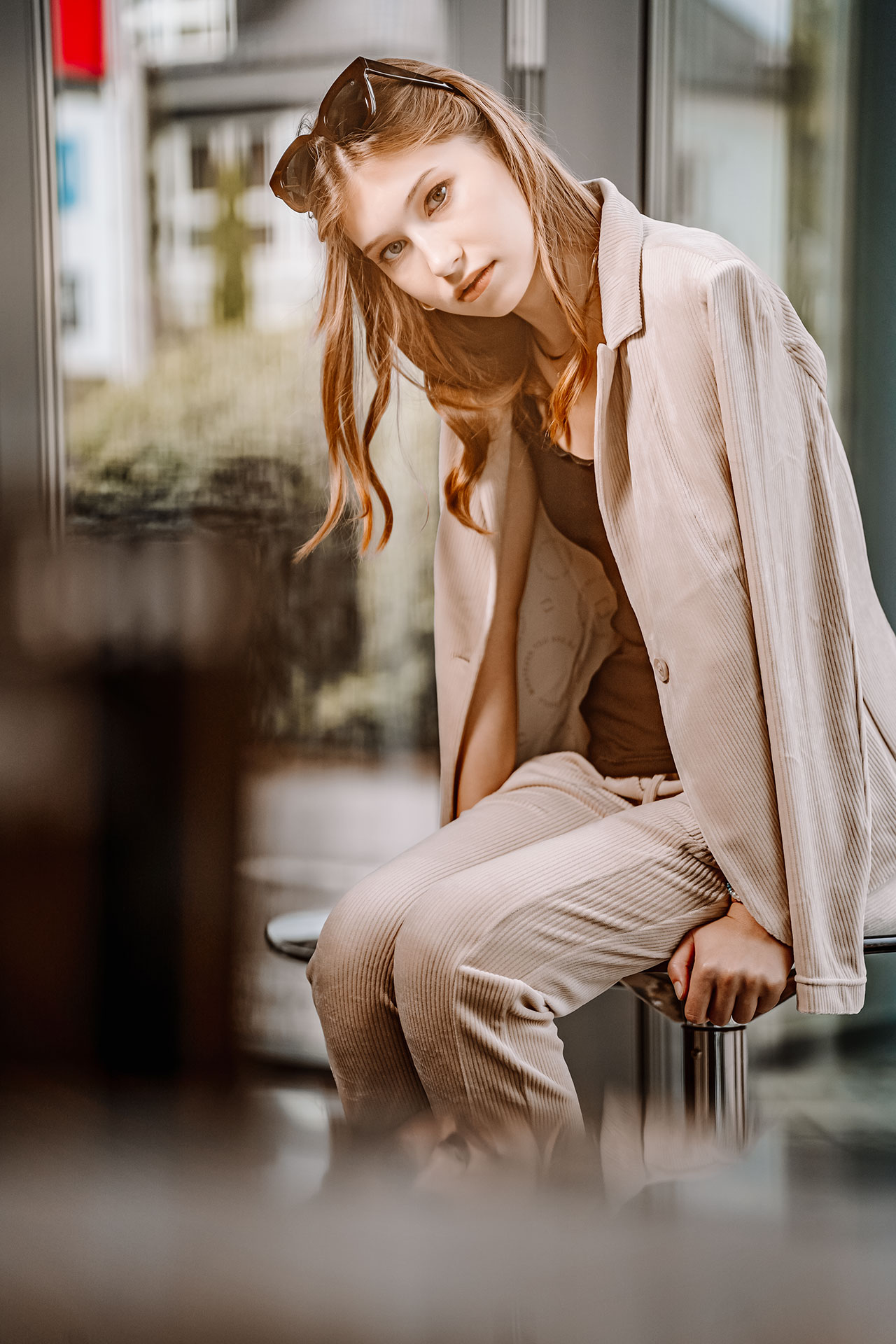 Ein besonders stilvoller Ansatz ist das Ton-in-Ton-Outfit in Beige. Hierzu kombinieren Sie eine Cord-Jacke mit passenden Cord-Hosen in der gleichen Farbe. Dieser monochrome Look wirkt besonders edel und harmonisch. Die gleichmäßige Farbe sorgt für einen gepflegten und zusammenhängenden Eindruck, während der Cordstoff dem Outfit eine subtile Tiefe verleiht.