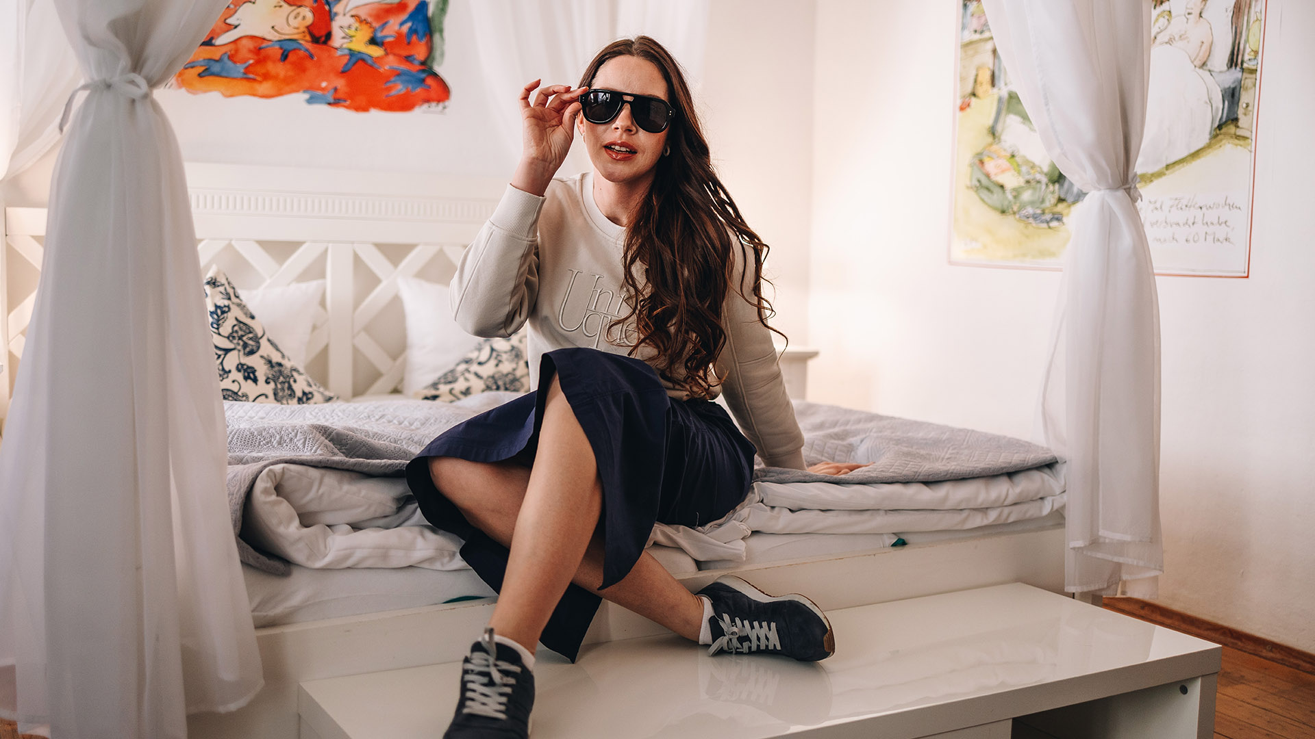 Die Wandelbarkeit des langen Rocks zeigt sich auch in der Schuhwahl: Mit hohen Schuhen wirkt das Outfit sofort elegant und feminin, während Turnschuhe und eine coole Sonnenbrille für einen lässigen, urbanen Touch sorgen. Egal, für welchen Stil man sich entscheidet – mit diesem IT-PIECE lassen sich unzählige Looks kreieren.