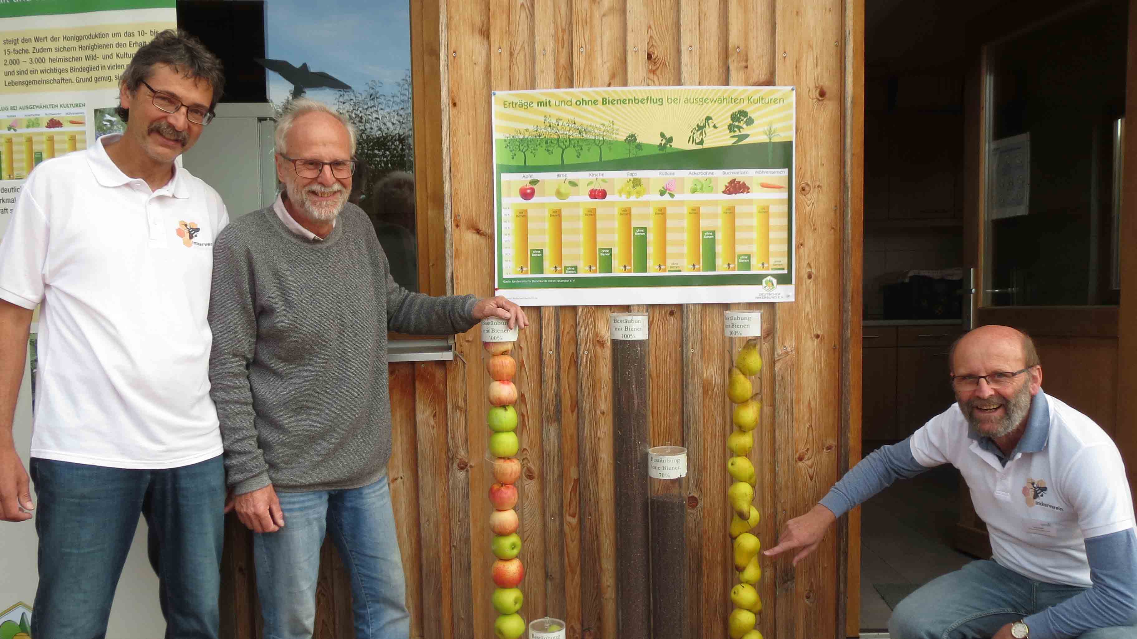 „Das ist für uns eine sehr gute Nachricht“, freut sich Josef Fichtl. Er hat es auch nicht anders erwartet, denn die Landwirte im weiten Umkreis bearbeiten ihre Flächen behutsam und viel weniger intensiv als das in anderen Regionen Bayerns der Fall ist. Sie bekommen dafür auch etwas zurück und zwar die unbezahlbare Mitarbeit der Honigbienen, die imstande sind, Erträge gewaltig zu steigern. Das macht bei Raps rund 30 Prozent mehr aus, bei Rotklee ist die Steigerung sogar noch wesentlich höher. Bei Äpfeln kann die Ernte drei Mal so üppig ausfallen und bei Birnen sogar bis zu zehn Mal so hoch. Zudem sind die Früchte wesentlich größer als ohne Bienen. Im Vergleich zu „Mitbewerbern“ wie Hummeln haben Honigbienen zwei unschlagbare Vorteile. Der eine liegt darin, dass sie als komplettes Volk überwintern und deshalb im Frühjahr gleich als gesamte Truppe loslegen können. Den zweiten beschreibt der Fachbegriff „blütenstet“. Damit ist gemeint, dass Bienen permanent bei einer Sorte bleiben, also Apfel, Apfel, Apfel anfliegen und nicht wie ihre „wilden“ Kollegen kreuz und quer Apfel, Gänseblümchen, Rübe durcheinander besuchen.2 Milliarden Euro Umsatz pro Jahr durch Bienen