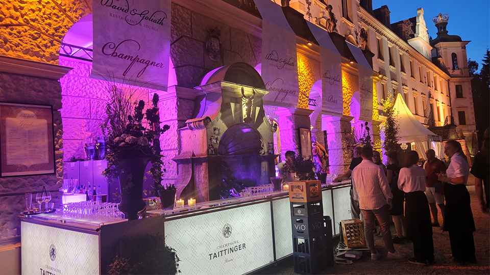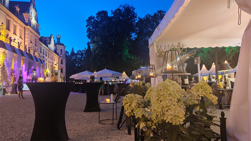 Im romantisch dekorierten Schlosspark konnten die Besucher:innen anschließend noch den Abend entspannt ausklingen lassen. Vom sommerlich frischen Limoncello Spritz bis zum edlen Champagner fand hier jede:r seinen erfrischenden Begleiter.