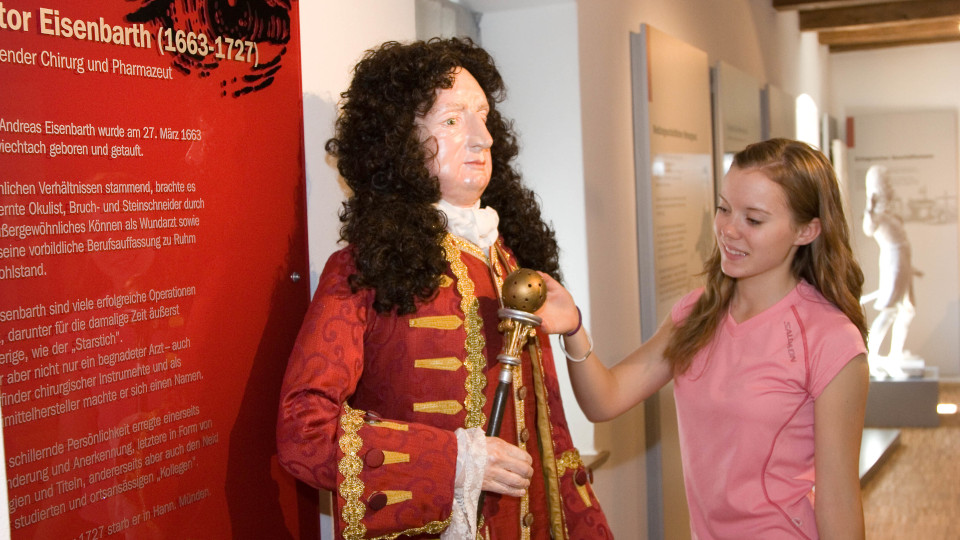 Im Eisenbarth-Museum in Oberviechtach wird das Geschehen aus jenen Zeiten lebendig, in der die Chirurgie noch in ihren blutigen Kinderschuhen steckte. Die Sammlung ist spannend, informativ, aber gelegentlich auch gruselig wie eine Folterkammer. Außerdem ehrt Oberviechtach seinen berühmten Sohn alljährlich mit den Doktor-Eisenbarth-Festspielen. Auf einem neun Kilometer langen Eisenbarth-Steig können sich Wanderer zudem auf die Spuren des Doktor Eisenbarth begeben. Ein besonderes Mitbringsel für zuhause ist das Eisenbarth-Elixier: ein Magenbitter, den es nur in Oberviechtach gibt. Mehr Informationen zum Doktor-Eisenbarth-Museum sind auf dessen Website zu finden.