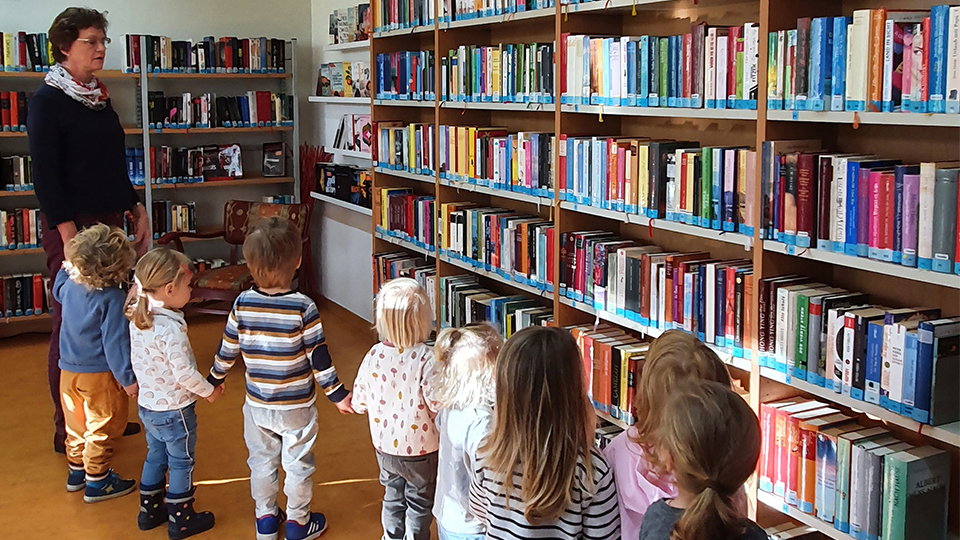 Unter der Leitung von Elisabeth Hübl bildeten die Kinder zum Lied „Tschu, tschu, tschu die Eisenbahn“ einen „Bibliothekszug“. Dabei haben sich alle Kinder gegenseitig an den Händen genommen und eine lange Kette gebildet. Von Raum zu Raum zogen die Kinder durch die Bücherei und konnten dann die verschiedensten Bücherkategorien entdecken. Außerdem konnten sie sich mit bekannten Buchcharakteren von Ottfried Preußler, wie zum Beispiel dem kleinen Gespenst, vertraut machen.