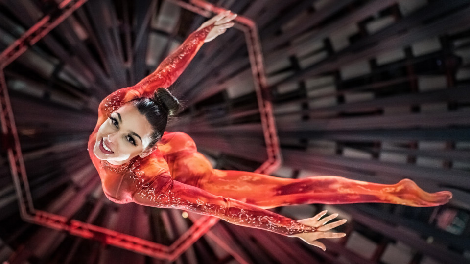 Die 22-jährige Alisa Shehter sorgte dafür, dass das Publikum wieder an die Decke des Zeltes schauen dürfte. Alisa und ihr Ring, der sie in luftige Höhen befördert, sind ein eingespieltes Team und trotzdem drückte es Teile des Publikums merklich tiefer in ihre Sitze, als Alisa teilweise nur an einem Fuß hängend durch die Arena flog. Die Geschwindigkeit und Präzision ihrer Bewegung suchen ihres gleichen.
