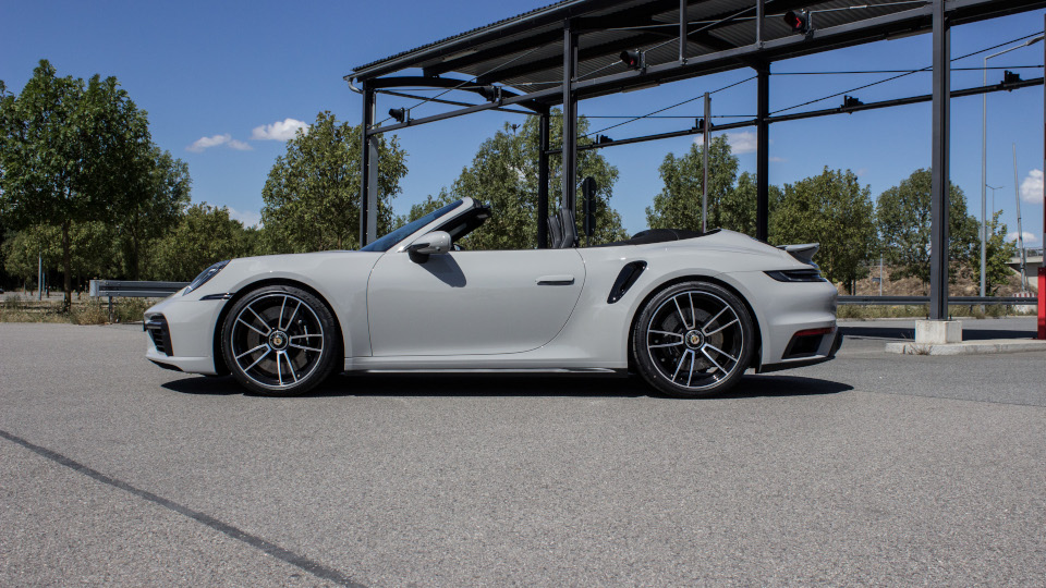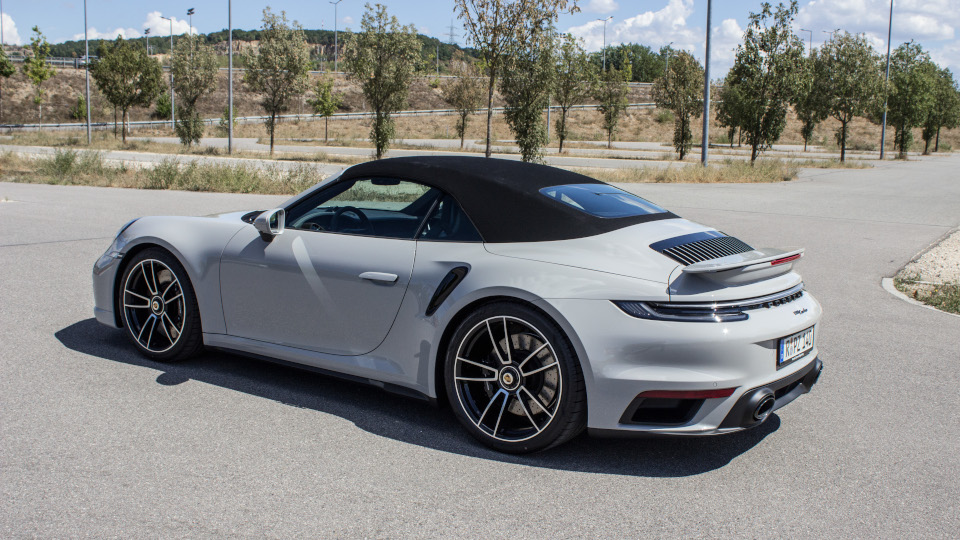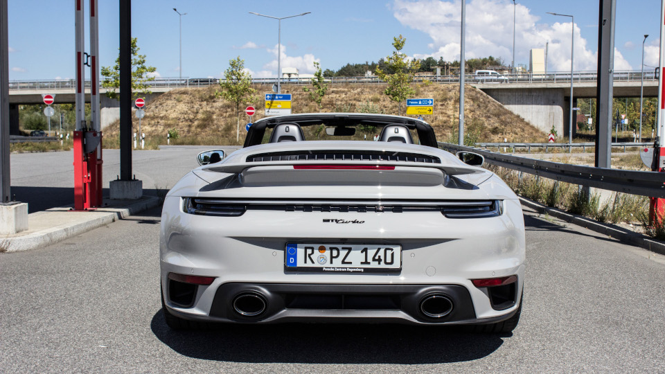 So oder ähnlich hat es sich angeblich zugetragen, als im Spätsommer 2020 die ersten Turbos der 992er Generation in die freie Wildbahn entlassen wurden. Wahlweise mit regulären 580 PS oder 650 PS im Turbo S. Wir entführen dem Porsche Zentrum Regensburg ein 580 PS Cabrio. Da es bei unserem Test immer noch knapp 30 Grad hatte, freuten wir uns über jeden Meter ohne Dach und hatten es bis zur Autobahnauffahrt schon zweimal auf und zu gemacht – knappe zwölf Sekunden dauert das jeweils, möglich bis 50 km/h. Und ab geht's!