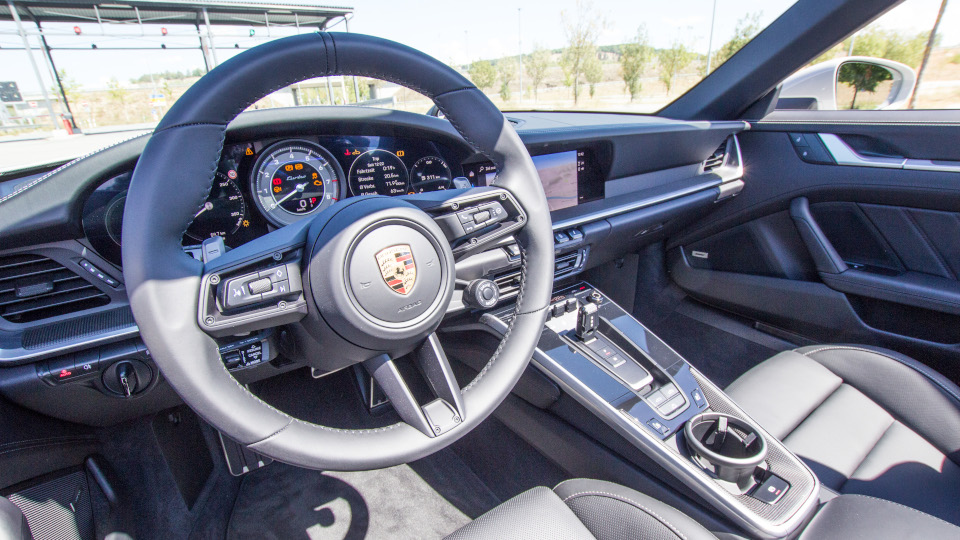Innenausstattung: Seit der 997-Elferreihe ist der Innenraum nahezu so gut wie Antrieb und Fahrwerk. Perfekt verarbeitet und wer die Einfassung der Cockpitinstrumente betrachtet, erkennt sofort die Hommage an die Generationen 993 und davor. Alt und neu harmonieren. Auch lässt Porsche es sich nicht nehmen, einen zu drehenden, fest verbauten Startschlüssel links neben dem Lenkrad zu haben. Wir sind gespannt, wie sich der Gangwahlhebel künftig entwickeln wird.