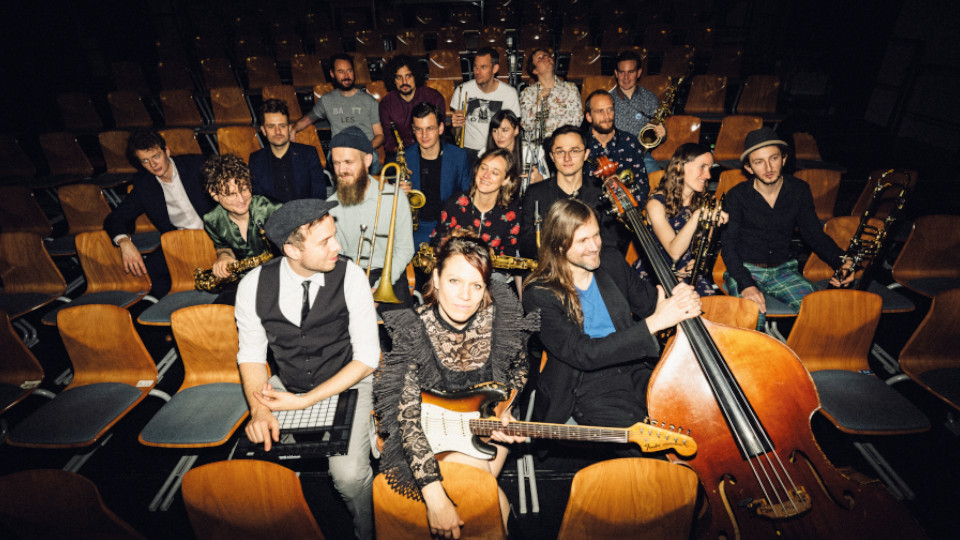 Die „Monika Roscher Big Band“ kehrt dabei mit ihrer wilden Neuinterpretation der klassischen Jazz-Großbesetzung zurück auf die Konzertbühnen. Über viele Jahre zusammengewachsen fühlt sich die mittlerweile 18-köpfige Prog Big Band in musikalischen Grenzbereichen zwischen Math-Jazz, Avant-Pop und Electronica heimisch und zelebriert bei jedem ihrer mitreißenden Konzerte die gegenseitige musikalische Freiheit, Herausforderung und Inspiration. Die spannungsgeladenen Kompositionen der Gitarristin und Bandleaderin Monika Roscher lassen traumweltliche Landschaften entstehen, die mal durch ihre lyrische Schönheit betören, dann wieder in rasender Entfesselung schwindelerregende Abgründe aufzeigen. So klingt eine Band, die das Abenteuer liebt, die sich angetrieben von einem unstillbaren Hunger nach musikalischer Symbiotik immer wieder selbst überrascht und aufs Neue erfindet.