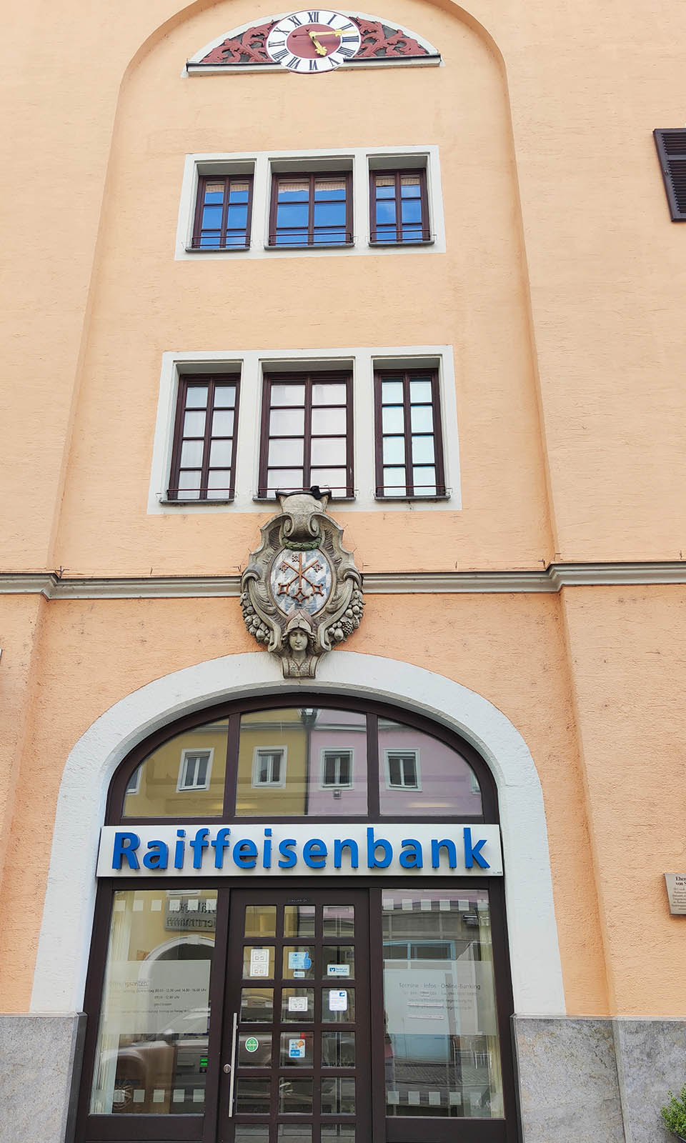 Das Wappen von Stadtamhof am ehemaligen Rathaus