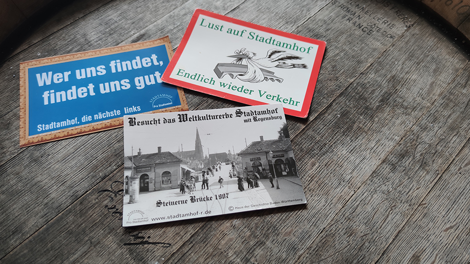 Karten der Aktionsgemeinschaft Pro Stadtamhof mit kreativen Slogans