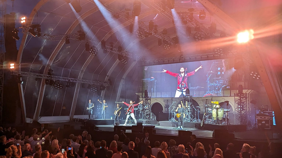 Nach einigen weiteren Interpretationen verschwand HAUSER plötzlich von der Bühne und die Aufmerksamkeit galt vor allem dem starken Auftritt des Drummers. Mit einem Wechsel von seinem schwarzen Hemd in ein dunkelrotes kehrte HAUSER für „Let’s Get Loud“ zurück auf die Bühne. Ein weiterer Überraschungsmoment, der eine vollkommen neue Stimmung auf den Tribünen verbreitete. Die elegante, magische Atmosphäre wurde von einer ausgelassenen Stimmung abgelöst – die Zuschauerinnen und Zuschauer konnten sich nun kaum mehr auf den Plätzen halten. Auch Fürstin Gloria von Thurn und Taxis sang und feierte bei einigen Songs begeistert mit.