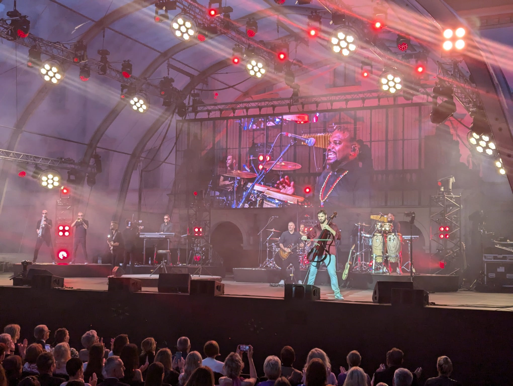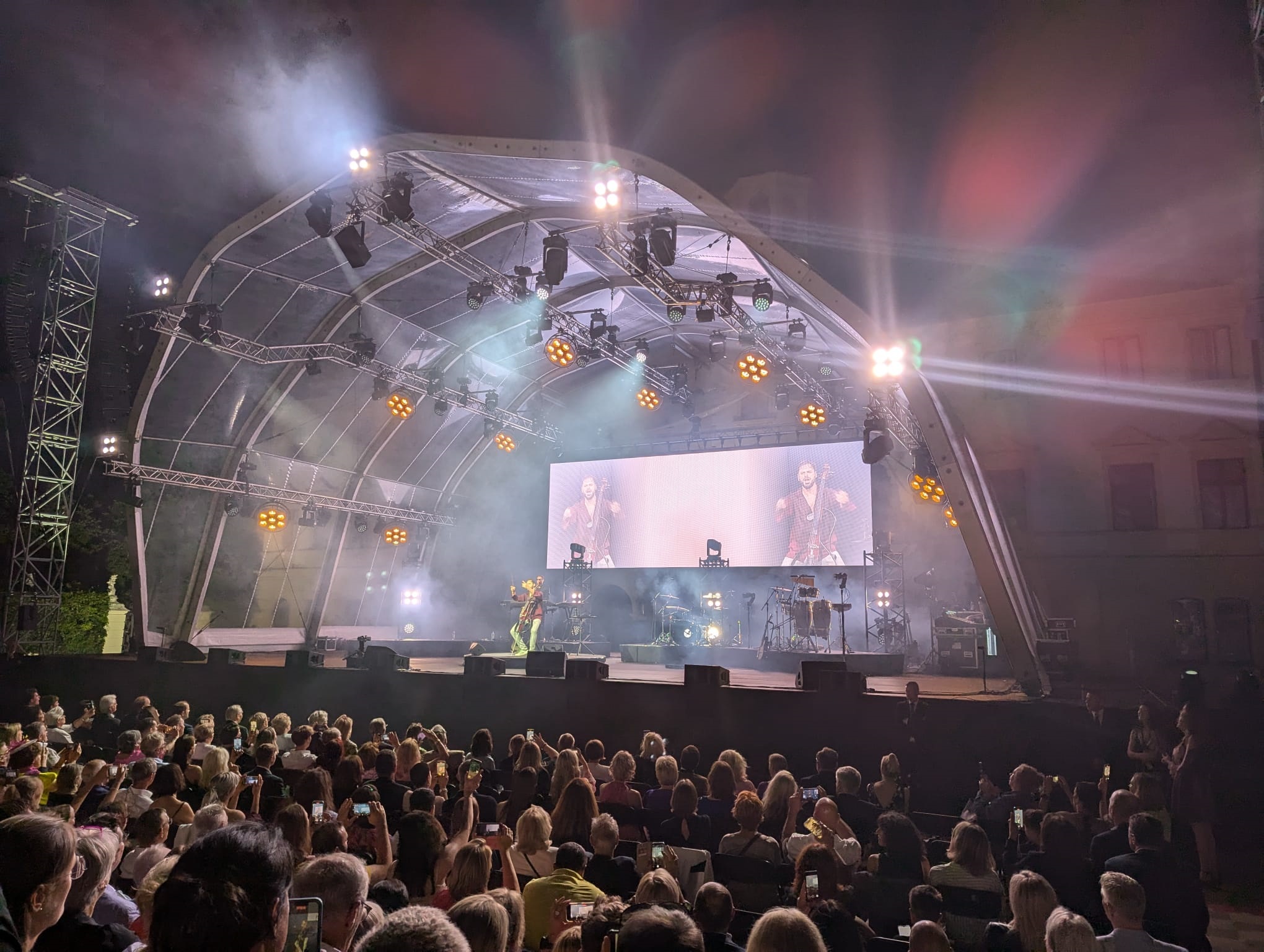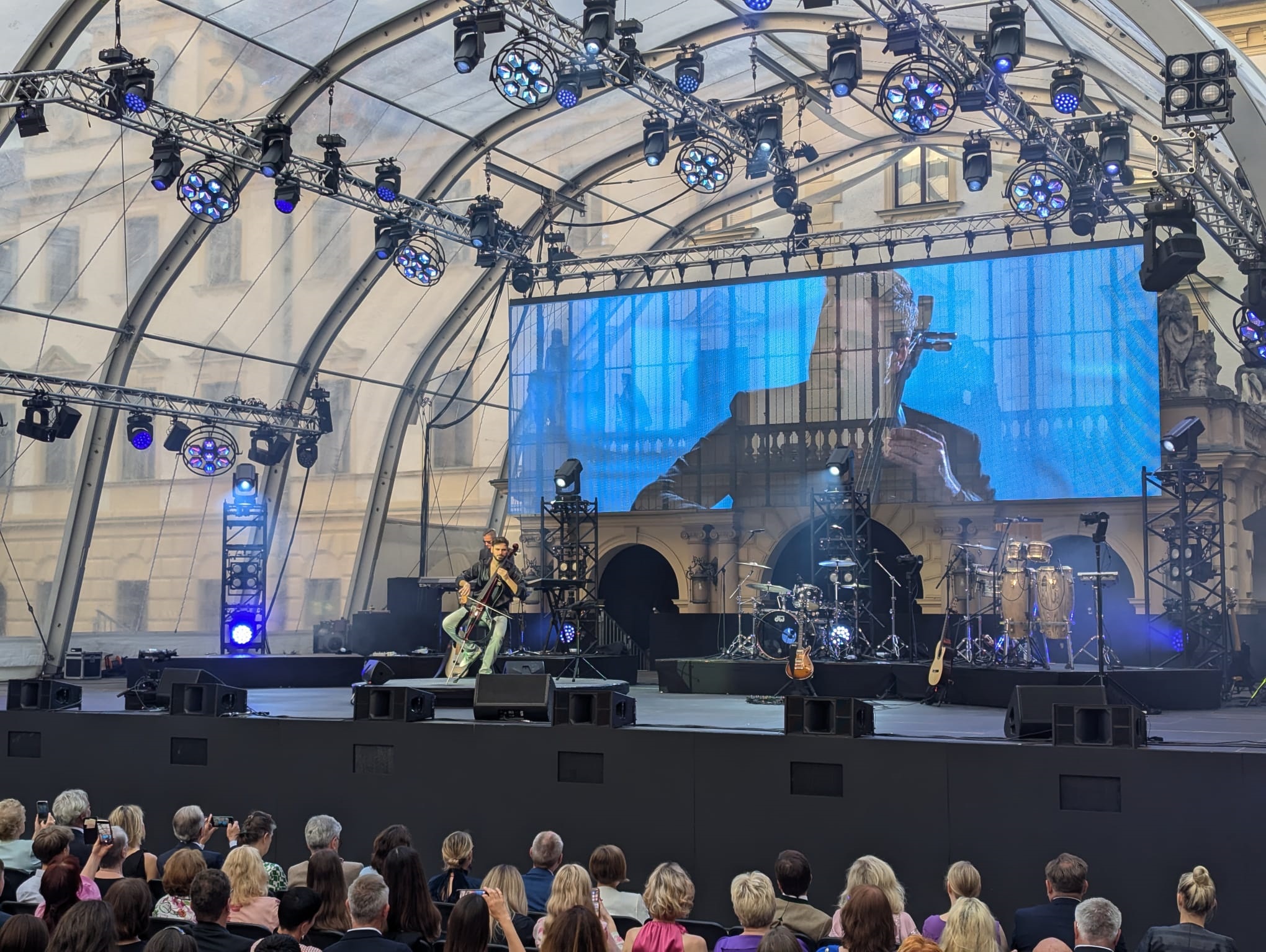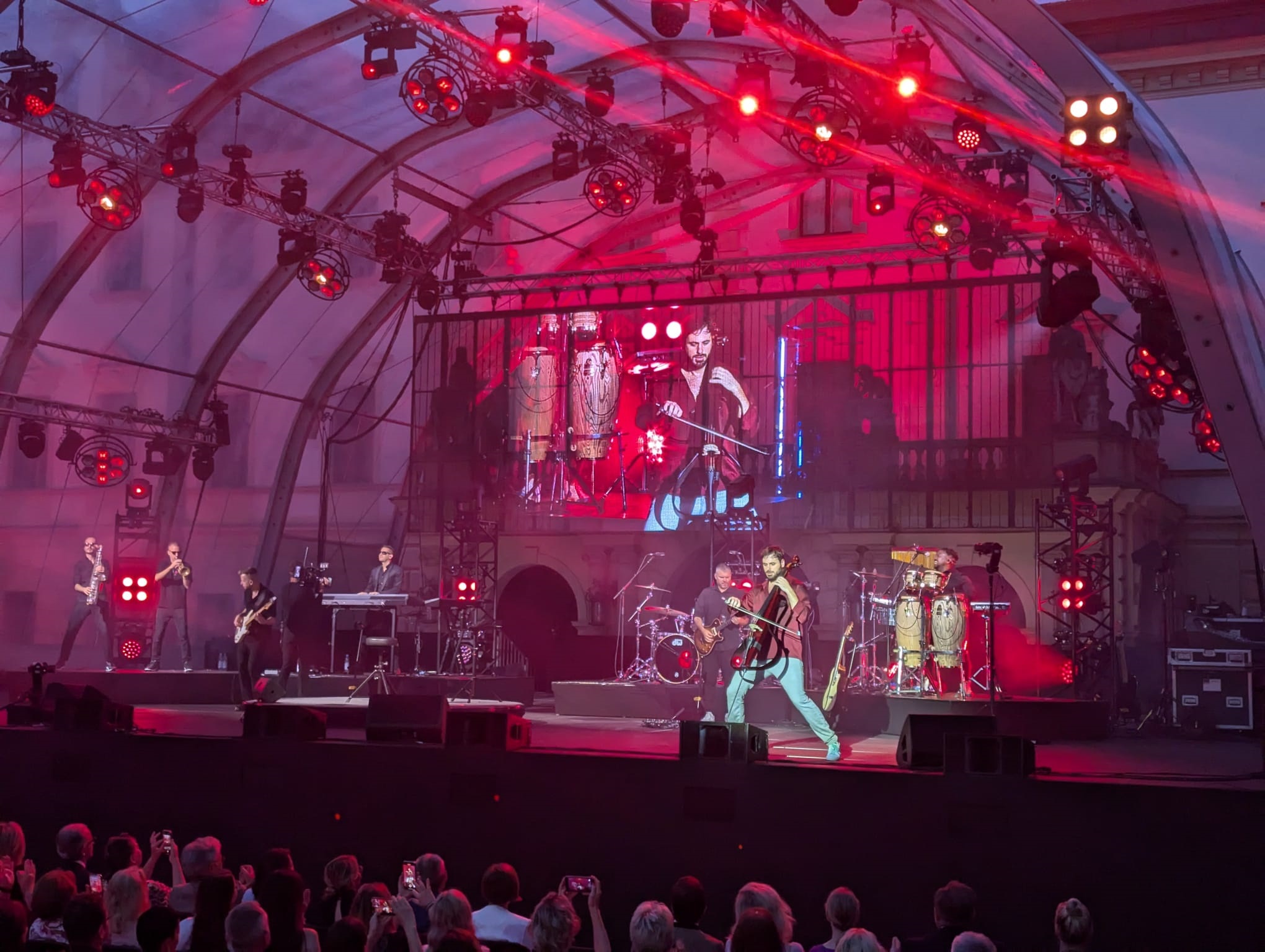 Das Schloss und der Schlosspark strahlten auch am gestrigen Mittwochabend, den 17. Juli, wieder in den wundervollsten Farben, prächtige Blumen schmückten den Barbereich und die Tische. Doch gestern waren die Menschen nur aus einem Grund da: Sie wollten den kroatischen Ausnahme-Cellisten HAUSER in Regensburg live erleben. Er ist sonst auf den ganz großen Bühnen der Welt unterwegs und fasziniert ein Millionenpublikum. Sein Konzert bei den Schlossfestspielen war auch das einzige, das er dieses Jahr in Deutschland spielte. Aus diesem Grund waren neben Regensburgerinnen und Regensburgern auch viele Menschen von weit her angereist, um den Rebell mit dem Cello zu sehen.