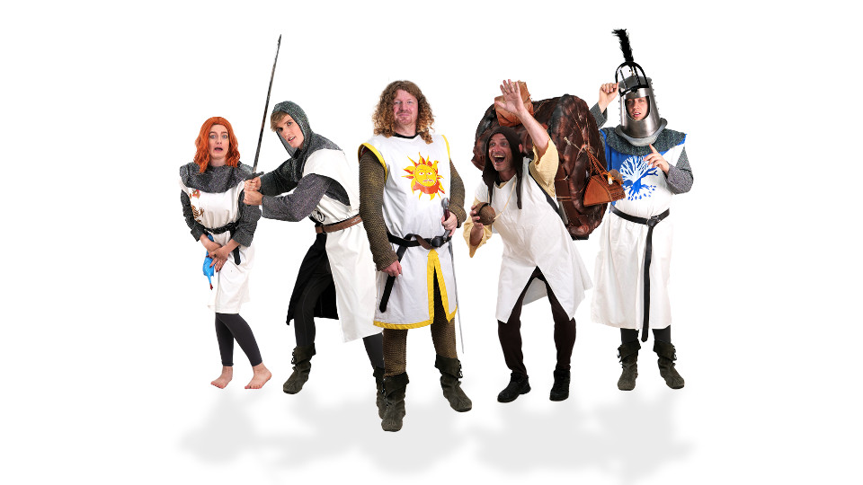 Wie auch im Film geht es um König Artus (Michael Zanner), der seine Ritter der Tafelrunde um sich schart und von Gott höchstpersönlich auserkoren wird, den Heiligen Gral zu finden. Auf dem Weg dahin erleben die Ritter allerlei kuriose und sehr lustige Abenteuer. Das Killerkaninchen, der arm- und beinlose schwarze Ritter („nur eine Fleischwunde“) oder die gemeinen Franzosen sind längst in die Filmgeschichte eingegangen. Neben bekannten Szenen aus dem Film gibt es eigens für das Stück geschriebene Lieder. Dazu gehört aber auch „Always Look on the Bright Side of Life“, das dank des Films „Das Leben des Brian“ bekannt wurde. Die Live-Band, die ebenfalls direkt in das Stück integriert ist, wird von Andreas Lehmann geleitet und dirigiert.