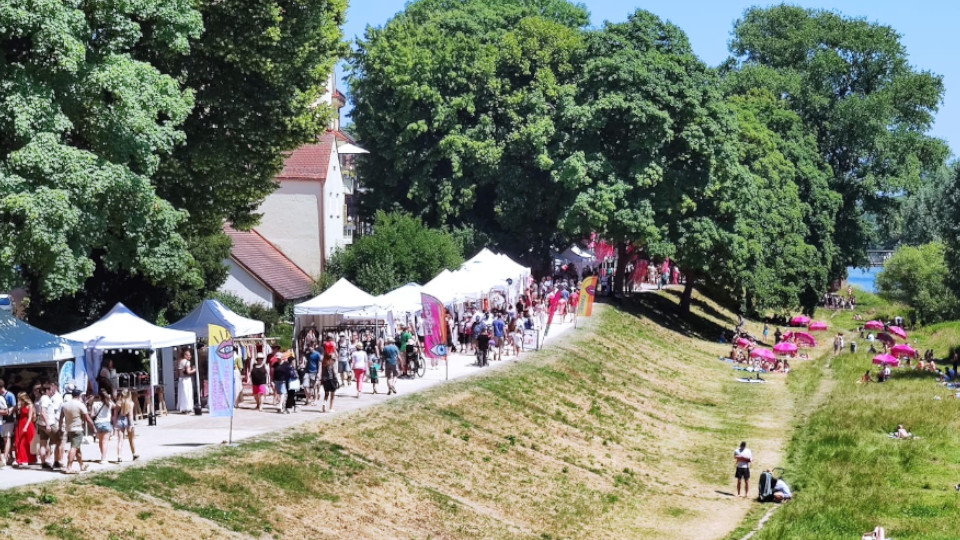 Stände mit Kunstwerken, Schmuck und kösltichem Essen an der Donau. © Marina Triebswetter I filterVERLAG