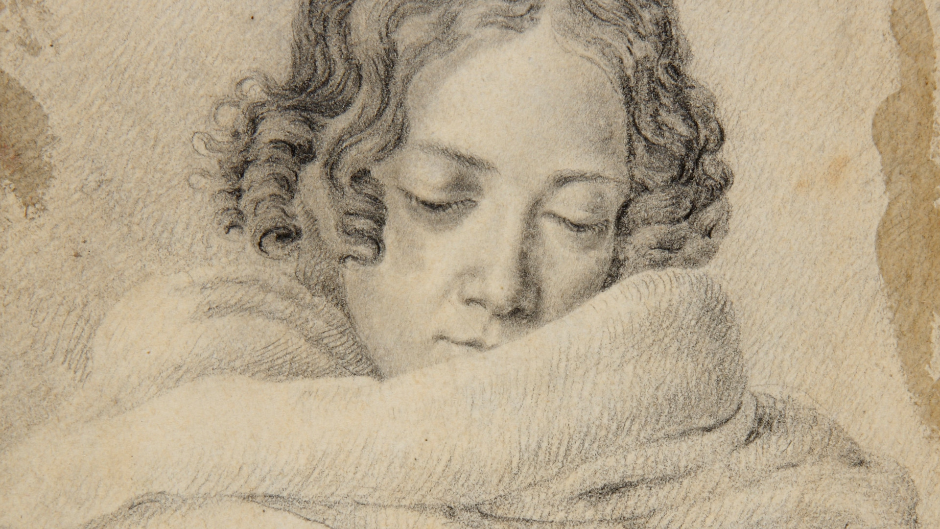 Ludwig Emil Grimm: Bettina Brentano (später v. Arnim) in einen Wollschal gehüllt. Ca. 1809. (Freies dt. Hochstift, mit frdl. Genehmigung, Foto: D.Hall)