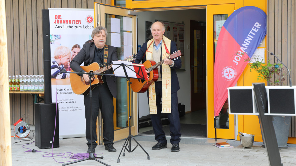 Schließlich spendeten der evangelische Pfarrer Stefan Drechsler und der katholische Pfarrer Johann Babel gemeinsam und von ihren Gitarren begleitet den Segen. Damit ist das viergruppige Kinderhaus mit zwei Kindergarten- und zwei Kinderkrippengruppen und insgesamt 74 Betreuungsplätzen auch offiziell eröffnet und eingeweiht.Im Nachgang zum offiziellen Teil standen die Türen des Johanniter-Kinderhaus „Storchennest“ für alle Besucher zur Besichtigung offen. Zahlreiche Eltern und Interessierte nutzen die Gelegenheit, sich ein Bild vom Neubau zu machen. Dazu war auch für das leibliche Wohl bestens gesorgt. Weitere Informationen zum Johanniter-Kinderhaus Storchennest gibt es bei Einrichtungsleitung Bianka Rusch unter der Rufnummer 09407 / 95 87 71 2 oder auf der Website der Johanniter.