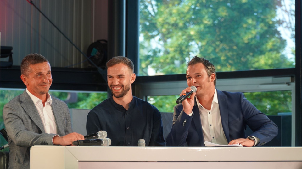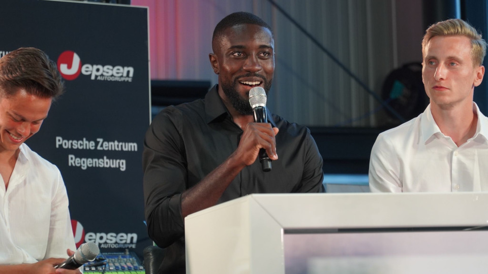 Im Anschluss daran trat auch der Geschäftsführer Sport Roger Stilz auf die Bühne und blickte gemeinsam mit den Zuschauern auf die anstehende 2.Bundesliga Saison, ehe sich die sieben Jahn Neuzugänge, Kapitän Benedikt Gimber und Chef-Trainer Mersad Selimbegovic den Fragen von Moderator Christian Sauerer stellten. Das Porschezentrum bleibt damit auch in der Öffentlichkeit verlässlicher und stolzer Partner des SSV Jahn Regensburg.
