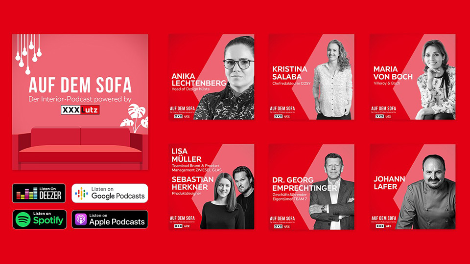 Wie Online-Audio-Formate ihren Zuhörer:innen echten Mehrwert bieten können, bewies der Podcast „Auf dem Sofa“ in den vergangenen Monaten. Denn Moderatorin Lena Semrok führt nahbar und sympathisch durch das Programm, in dem hochkarätige Gäste, wie Anika Lechtenberg, Head of Design bei hülsta, Kristina Salaba, Chefredakteurin des COSY-Magazins, oder Dr. Georg Emprechtinger, Inhaber des Möbelunternehmens Team 7, ihr Experten-Wissen teilen. Ebenfalls zu Gast waren bereits Maria von Boch aus der Gründerfamilie Villeroy & Boch sowie Lisa Müller, Produktmanagerin bei Zwiesel Glas und Produkt-Designer Sebastian Herkner.