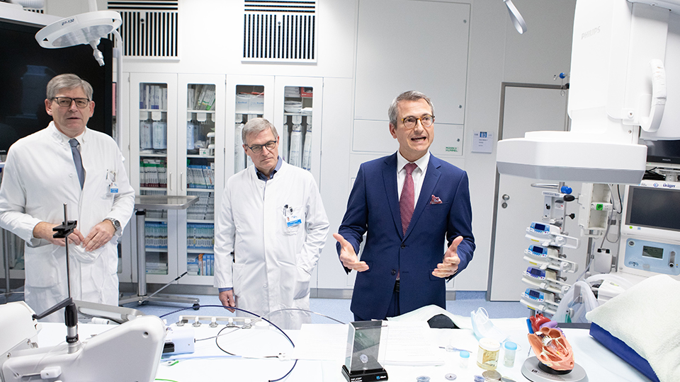 Die Klinik und Poliklinik für Innere Medizin II des Universitätsklinikums Regensburg (UKR) stellt ein neues Herzkatheterlabor vor. Wie wichtig es ist, die besten Voraussetzungen für eine funktionierende medizinische Versorgung zu schaffen, bestätigt dabei auch ein Patient, der sich nach seinem Herz-Kreislauf-Stillstand für die medizinische Entwicklung einsetzt.