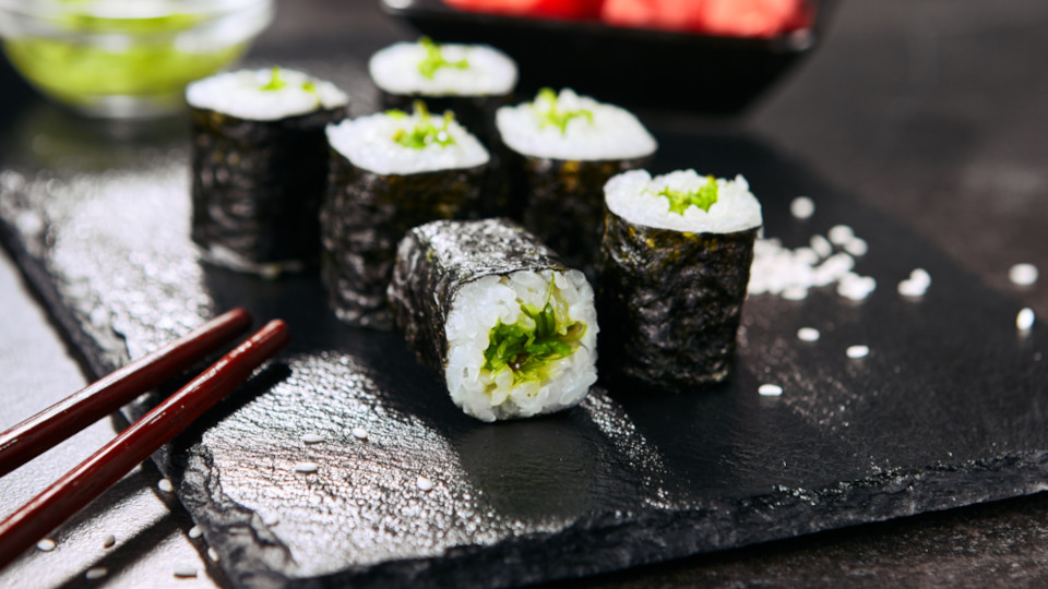 In anderen Kulturen, besonders im asiatischen Raum, gehört die Alge genauso zum Speiseplan wie bei uns die Kartoffel. Grundsätzlich wird zwischen sogenannten Makroalgen und Mikroalgen unterschieden. Die bekanntesten essbaren Makroalgen, wie Nori, Wakame, Kombu, Ulva oder Zuckertang, werden getrocknet angeboten, um darin dann beispielsweise den Sushi-Reis einzuwickeln. Man bekommt diese Speisealgen mittlerweile in den meisten Supermärkten und in einer größeren Auswahl in Asia-Läden. Darüber hinaus begegnen uns beim Einkaufen – eher unbemerkt – auch immer mehr Mikroalgen. Wer sich also schon mal gefragt hat, was hinter dem Begriff „Spirulina“ steckt, der immer öfter in Müsliriegeln oder Getränken auftaucht – der weiß spätestens jetzt, dass dahinter eine Mikroalge steckt, die in Pulver- oder Tablettenform als Nahrungsergänzung eingesetzt wird. Der Rohstoff Alge wird von der Lebensmittelindustrie auch zunehmend zur Herstellung von Fisch-Ersatzprodukten oder rein pflanzlicher Gelatine wie Agar-Agar eingesetzt. Nicht nur Veganer schätzen Algen besonders für ihren hohen Gehalt an Omega-3-Fettsäuren. Darüber hinaus sind sie kalorienarm und enthalten neben Ballaststoffen auch zahlreiche Nährstoffe wie Beta-Carotin, Vitamin C, E und B12. Zusätzlich liefern sie Mineralstoffe und Spurenelemente wie Eisen, Selen, Zink und Jod.