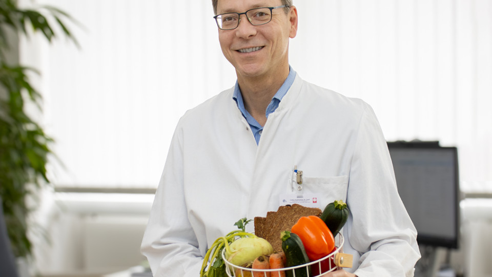 „Wer sich gesund ernährt, tut nicht nur etwas für seine Figur, sondern senkt auch sein Krebsrisiko“, sagt Prof. Dr. Roland Büttner, einer der beiden Chefärzte der Klinik für Innere Medizin am Caritas-Krankenhaus St. Josef. Nach Schätzungen des World Cancer Research Fund (WCRF) ließe sich so beispielsweise ein Drittel der Darmkrebserkrankungen nach aktuellem Stand der Forschung durch gesunde Ernährung und Bewegung verhindern.
