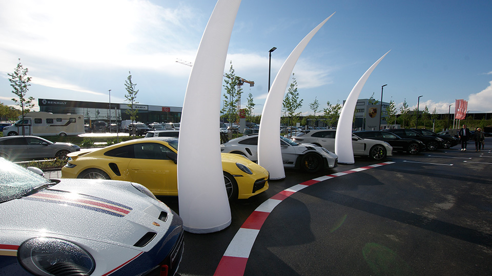 Es war ein großes Stelldichein von Autoliebhabern, Unternehmern, Vertretern der Stadt und der Presse. Auch Rennsport-Ikone Walter Röhrl war persönlich vor Ort und hat als erster die Porsche 911-Motorhaube in Sonderlackierung signiert. Nachdem sich alle Gäste bei Aperitif und Häppchen im Neubau eingefunden hatten, lief plötzlich der Countdown. 60 Sekunden bis zum Start!
