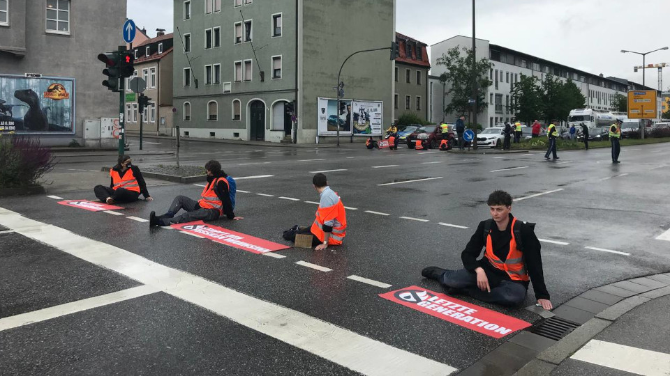 Am Morgen des, 07. Juni, blockierten Mitglieder der Organisation „Letzte Generation“ die Frankenstraße in Regensburg, indem sie sich auf der Straße festklebten. Dabei trugen die Menschen nach eigenen Angaben heute in Reaktion auf den mutmaßlichen Nazi-Vergleich von Olaf Scholz elegante schwarze Kleidung unter ihren Warnwesten. Mit ihren deutschlandweiten Aktionen fordert die „Letzte Generation“ unter anderem den Stopp neuer Öl-Bohrungen in der Nordsee.
