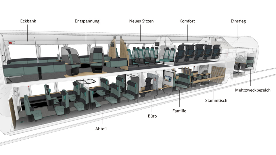 Evelyn Palla, Vorständin Regionalverkehr Deutsche Bahn AG, erklärt: „Im Ideenzug Südostbayernbahn erleben unsere Fahrgäste in Bayern bald als erste den Regionalverkehr der Zukunft. Ob Drehsessel für mehr Privatsphäre oder Live-Informationen zur Auslastung des Zuges auf Displays: Wir sorgen für mehr Komfort und mehr Qualität.“ Damit möchte die Deutsche Bahn möglichst viele Menschen überzeugen, vom Auto in den klimafreundlichen öffentlichen Nahverkehr umzusteigen – insbesondere Pendlerinnen und Pendler im ländlichen Raum, die ihre Zeit an Bord individuell gestalten können.