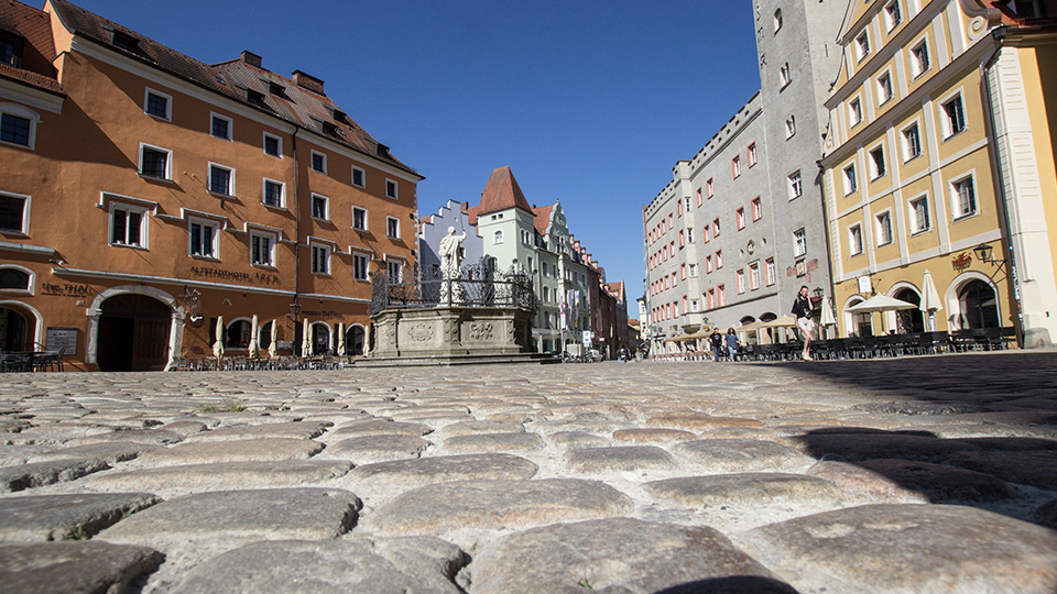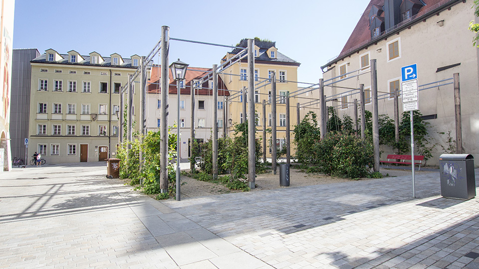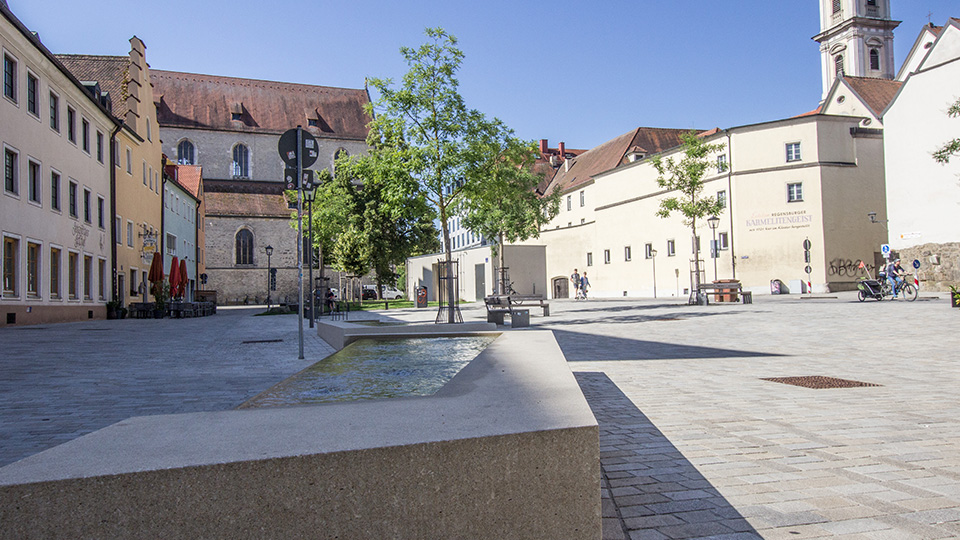 Ein weiterer zentraler Punkt in einer historischen Stadt wie Regensburg: der Denkmalschutz: „Wir haben insbesondere in der Altstadt und im UNESCO-Welterbe-Gebiet Vorschriften, wie das Stadtbild und die Flächen mit historischem Baumbestand gestaltet werden können. Satzungen schützen aber den Erhalt von Gärten und Freiflächen“, erläutert Meier. Trotzdem legt der Denkmalschutz etwa fest, dass in bestimmten Bereichen keine Grünflächen entstehen dürfen. Grund dafür sind beispielsweise gewisse Sichtachsen, die nicht „verbaut“ werden dürfen. „Hier ist die Sicht auf den Platz als Ganzes geschützt und ein Baum würde diese Sicht verändern“, erklärt Prof. Weber.