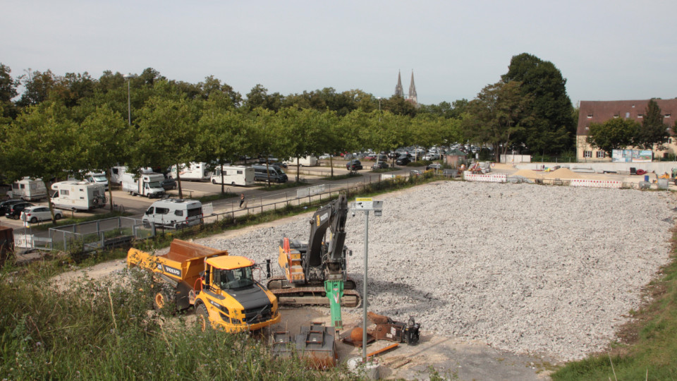 Geht man am Unteren Wöhrd vorbei, sieht man bereits die Bagger rollen: „Derzeit läuft die Baufeldfreimachung für das Parkhaus. Das alte Eisstadion wurde seinerzeit nur bis zur Geländeoberkante abgebrochen, das heißt, die Fundamente und Keller befinden sich noch im Erdreich. Diese müssen vor einer Bebauung und weiteren Nutzung entfernt werden“, erklärt Marion Brasseler vom das Stadtwerk.Regensburg. Das Tiefbauamt der Stadt Regensburg hat zudem mit dem Rampenbau begonnen, da die Zufahrt zum Unteren Wöhrd künftig hauptsächlich über die aktuell stark abfallende nördliche Seite erfolgen soll, um die Anwohner am Winterhafen zu entlasten.