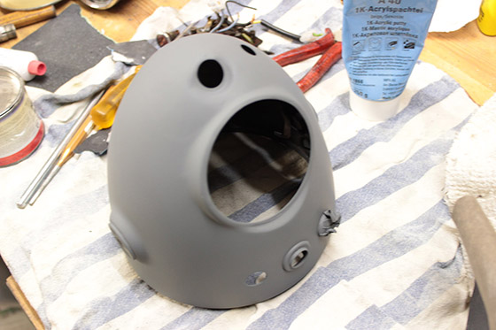 Das fertige Resultat lässt sich sehen. Auf dem Foto ist der Schweinwerfer noch nicht feinpoliert. Das machen wir erst beim Zusammenbau der Maschine.