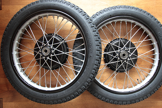 Dazu haben wir (das geht ganz einfach mit Spüli oder Montierpaste von Hand und ohne Montiereisen!) frische Felgenbänder, Schläuche und Mäntel aufgezogen: ca. 160 Euro.