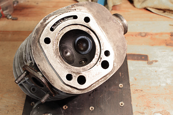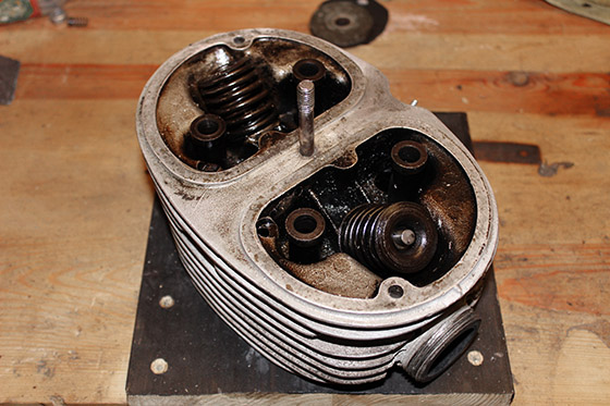 Der Kopf kommt dann auf die Werkbank und wird gereinigt. Ein „Dremel“ mit Stahlbürste ist hervorragend geeignet, dazu Bremsreiniger und Tuch. Sandstrahlen? Nur im schlimmsten Fall. Körner und Co. sollten da nirgendwo zurückbleiben zudem es sowieso wieder alles ölig-schmutzig wird.