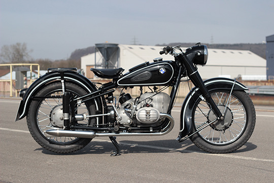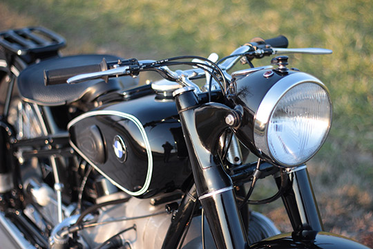 Teurer sind die BMW 2-Zylinder. 500 oder 600 ccm, oder die große 750er. Nach dem Krieg bestanden bis 1950 starke Hubraumrestriktionen. Dann wurde bei den 500cm die R51/2 produziert (ca. 5000 Stck) und kurz darauf (Ende 1950) die R51/3 bis 1954: 18.420 Stück. Innerhalb der 51/3 gab es im Vergleich zu den ersten Modellen unterschiedliche Optiken. Angefangen vom Auspuff (Schwalben-/Fischschwanz-/Torpedoendtopf), über elegante aber schlechter bremsende Halbnaben hin zu 2-farbigen Felgen, verschiedenen Scheinwerfergehäusen, kein Bremslicht bei den ersten Modellen sowie auch Hartschalen um die Federgabel im Vergleich zu späteren Faltenbälgen usw. Der Teufel steckt im feinen Detail.