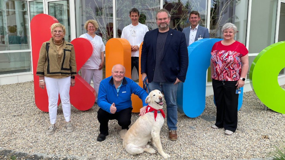 Zusammen mit seinem Hundebegleiter besucht er kranke Kinder. Das sei etwas Außergewöhnliches für eine Akutklinik, sagt Renate Fabritius-Glaßner, Leiterin des Bunten Kreises KUNO Familiennachsorge Regensburg. In der Psychosomatik sowie in Schulen und Behinderteneinrichtungen seien schon länger Therapiebegleithunde im Einsatz, was jetzt in der KUNO Klinik St. Hedwig eingeführt werde, sei deutschlandweit besonders.