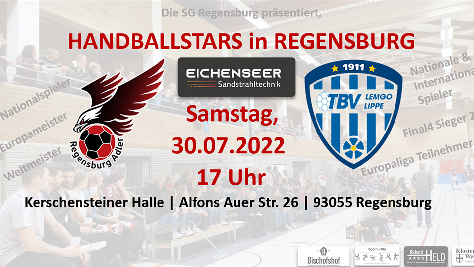 Noch die ganze Woche lang sind gleich zwei Handball-Bundesligisten in Regensburg. Neben dem TBV Lemgo ist auch der HC Erlangen in der Domstadt. Im Zuge der Saisonvorbereitungen ist der TBV Lemgo Lippe in Regensburg im Trainingslager. Am morgigen Mittwoch, den 27. Juli, tritt dieser dann gegen den HC Erlangen in einem Testspiel an. Beginn ist um 19.30 Uhr. Doch auch die Regensburg Adler haben am Samstag die Möglichkeit, sich gegen den TBV Lemgo zu beweisen.