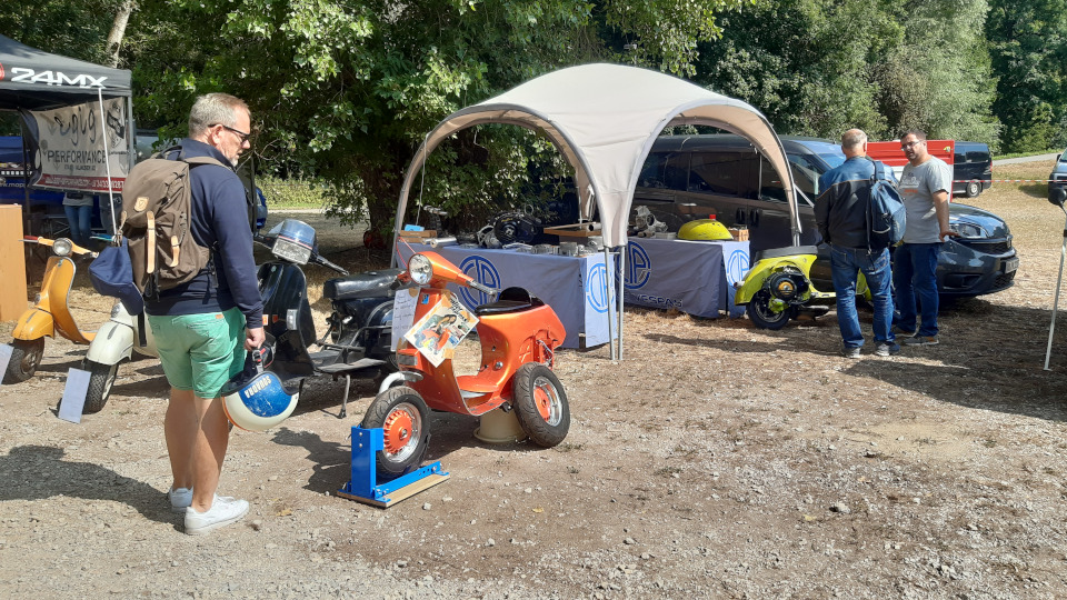 Neben kleineren Handelsständen boten auch regionale Händler einige Vespen an – und ja, die Preise sind eben die letzten Jahre explodiert (hierzu auch gerne in unseren Ausgaben im www.motofilter.de zu Modellen und Preisen wissenswertes nachlesen). Wer heute eine alte Vespa kaufen will, startet (vernünftig) bei 2500 Euro für eine 50er aus den 70ern und endet (für Fahrzeuge die in größeren Auflagen produziert wurden) bei 20.000 Euro in für Modelle aus den 40er & 50ern gerne auch bei mehr. Dafür gibt es eine riesige Vielfalt an Konstruktionen, Formen und Farben, an Technik und Motoren von 50 bis 200ccm und von zwei Pferdestärken bis zwölf PS in den PX und Rallys – jeder Topf findet seinen Deckel.