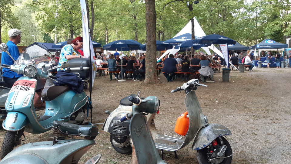 Los ging es mit dem Aufbau und ersten Feiern bereits am Freitag mit regionalen Besuchern und Anreisenden, die im Areal das kostenlose Camping in Anspruch nahmen. Bereits hier folgte eine muntere Nacht mit Musik, Grill, Pizza, Burger und allem, was das Herz neben passenden Getränken begehrt, die erst kurz vor Morgengrauen endete – wie auch die darauffolgende Nacht. Am Samstag wurden dazu Gruppenausfahrten unternommen und trotzdem waren den ganzen Tag hunderte Vespas vor Ort.