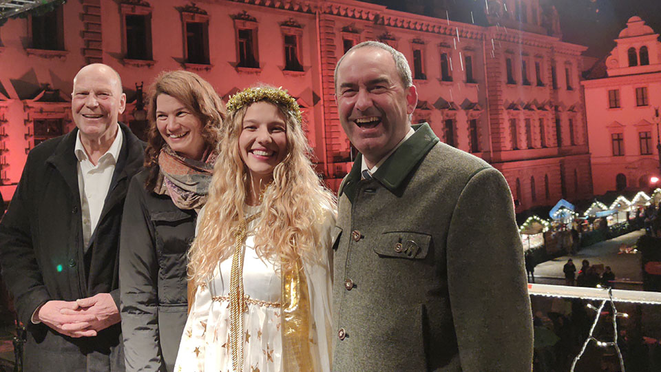 Beim Betreten des Romantischen Weihnachtsmarkts Thurn und Taxis strahlen einem wieder die vielen kleinen Lichter entlang der Wege, Bäume und Buden entgegen. In romantischer Stimmung lauschten die Besucher dem ersten öffentlichen Auftritt des Christkinds am Fürstlichen Schlossbalkon und stimmten sich anschließend bei Glühwein, Langos und gebrannten Mandeln auf die Weihnachtszeit ein. Neben Wirtschaftsminister Hubert Aiwanger, Landrätin Tanja Schweiger und Oberbürgermeisterin Gertrud Maltz-Schwarzfischer ließen sich auch der Generalkonsul der Vereinigten Staaten von Amerika Timothy Liston, der Generalkonsul von Ungarn Gábor Tordai-Lejkó, der Präsident des Landgerichts Landshut Dr. Clemens Prokop und zahlreiche Vertreter aus Politik und Wirtschaft die Eröffnungsfeier nicht entgehen. Einige von ihnen statteten dem Christkind sogar einen Besuch auf dem Fürstlichen Balkon ab und konnten von dort aus einen Blick auf den mit hunderten Lichtern erleuchteten Innenhof von Schloss St. Emmeram werfen.