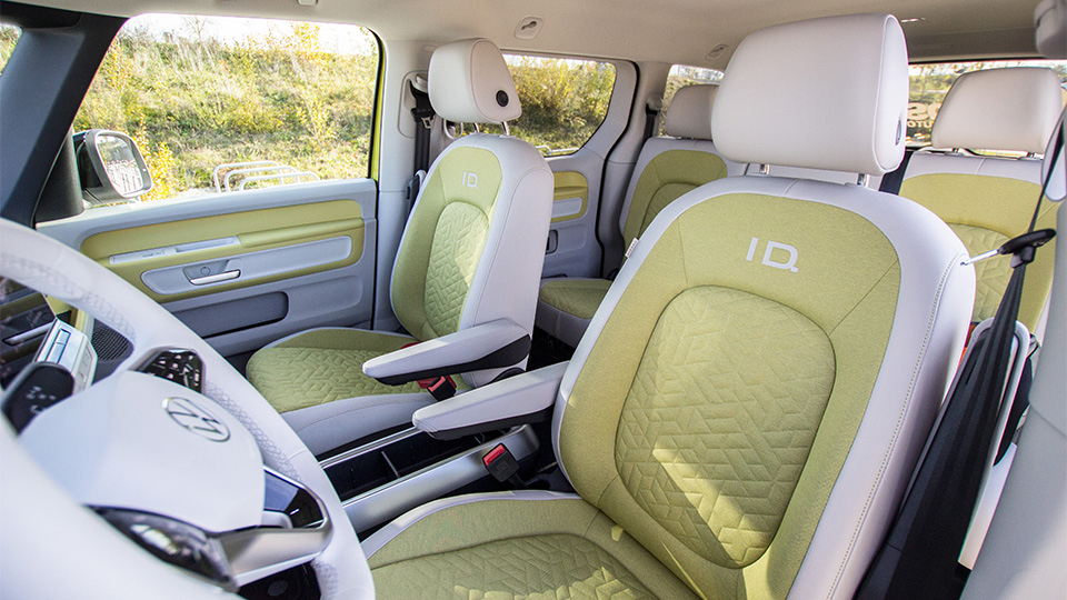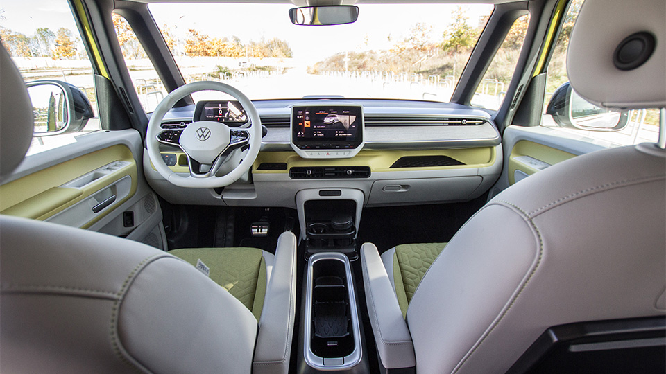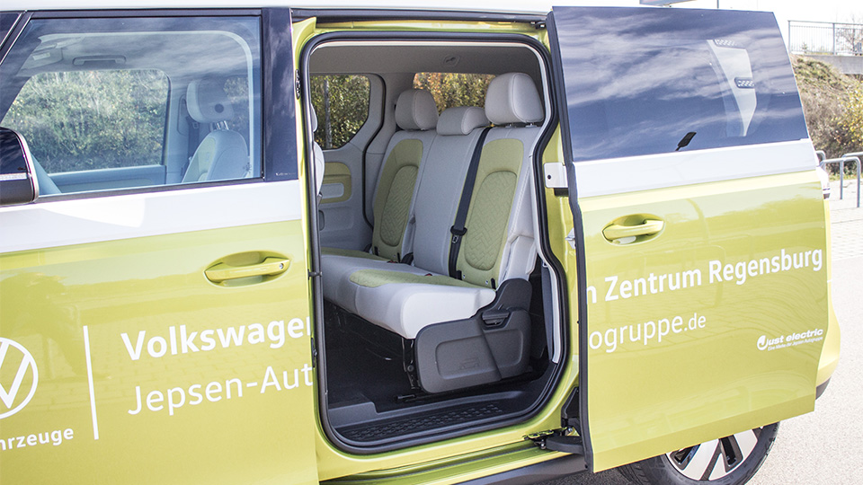 Ein Kilometer am Tacho – das VW-Zentrum Regensburg gibt uns die erste Ausfahrt, direkt ab von der Ladesäule. Nummernschilder ran und los geht es. Und ja, die Ostsee ist toll, aber die Sonne scheint im bayerischen Wald. Er passt so schön zum letzten bunten Herbstlaub: Farbenfroh. Originell. Die (optionale) Zweifarblackierung leuchtet in der Sonne. Das Design ist peppig und verspielt und damit doch ein Bruch zu den eher funktionalen T-Modellen um die Jahrtausendwende. Auch innen setzt sich die Zweifarbgestaltung im Leder und dem Interieur fort. Dazu die großen Fensterflächen – man fühlt sich wie in einem Wintergarten, in den die Sonne scheint, während es draußen kalt ist. Wohlfühlzeit!