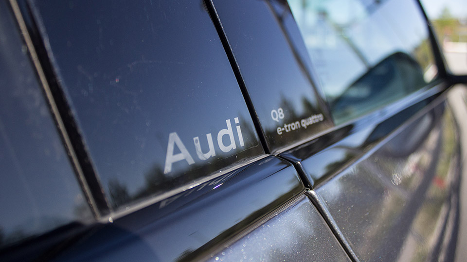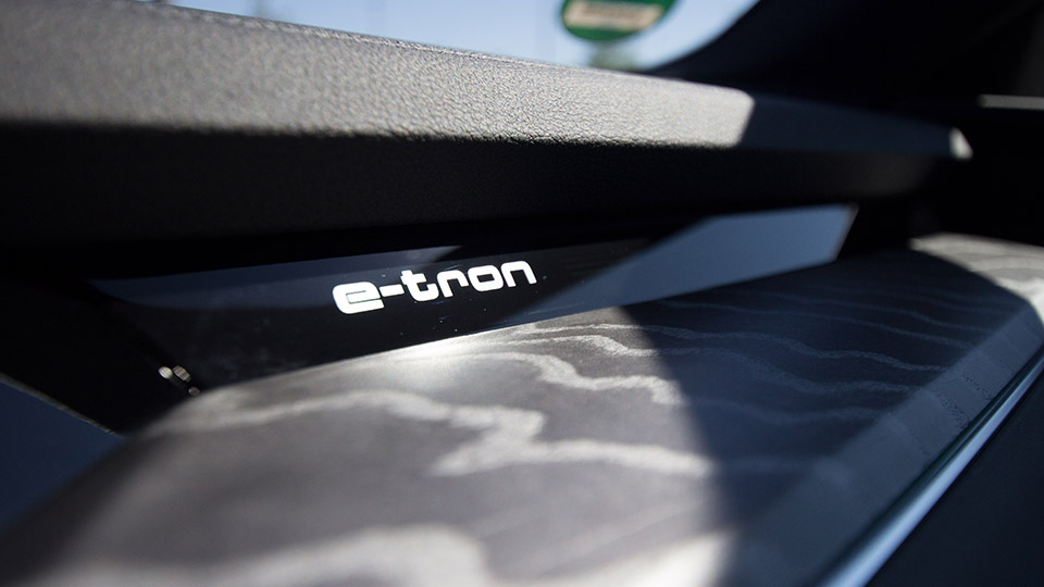 Das gilt auch für die Karosserie. Natürlich ist es ein großes Auto, aber das fällt nicht so wirklich auf. Bei unserem Testwagen kommt dem natürlich auch die abfallende Dachkante des Sportbacks zu Gute, samt nettem Dachspoiler. Neu ist hier auch das den e-trons angehörige Logo auf dem frisch designten Kühlergrill. Auch in der B-Säule finden sich nun einlackiert nochmals Logo und Fahrzeugtyp wieder. Das schöne Äußere wurde mit dem Facelift lediglich zart überarbeitet.