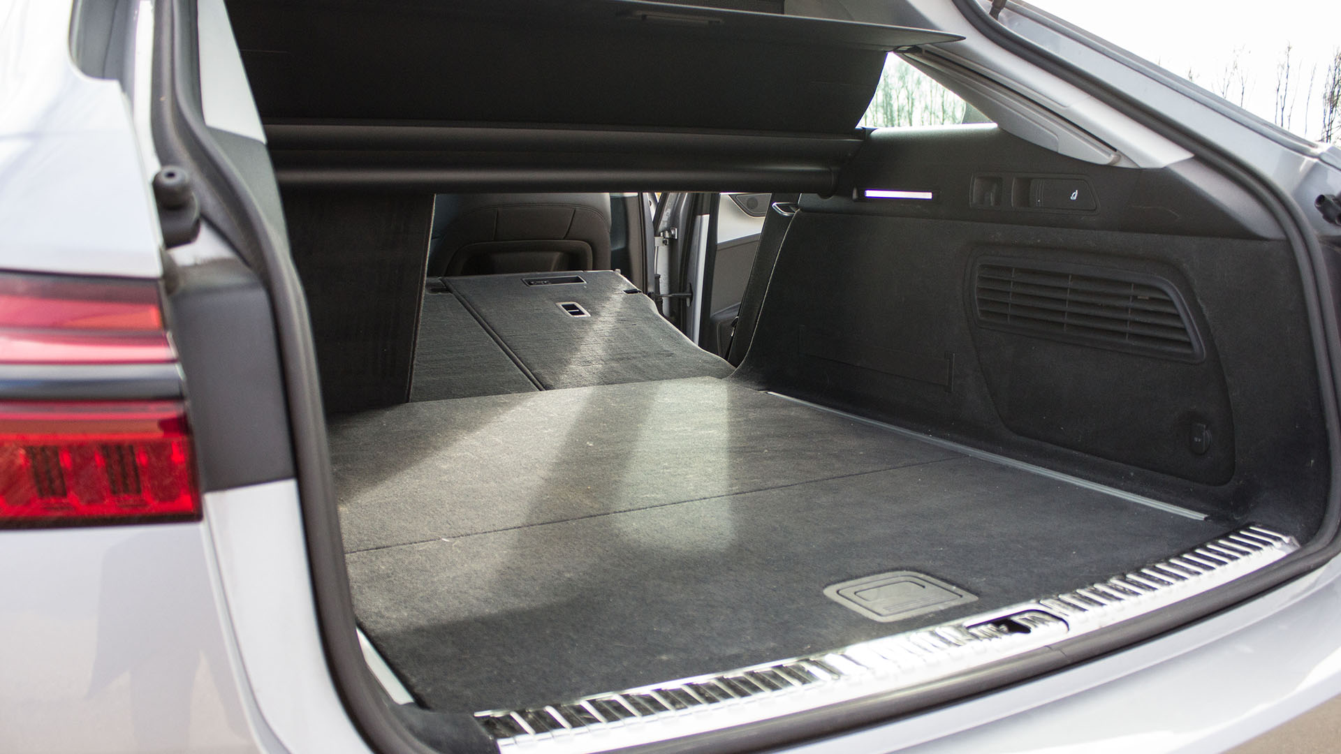 Gut 200.000 km weniger gelaufen hat unser junger Gebrauchter, den wir beim Autohaus Bierschneider zur Testfahrt abholen. Optisch wunderschön, außen ohne Gebrauchsspuren: „Florettsilber“ mit kontrastierenden, schwarzen Allroad-Kunststoffelementen. In dieser Farbkombination erkennt man die vielen kleinen und durchgestylten Elemente und auch die Linienführung der Karosserie samt Sicken und Kanten tritt markant zu Tage. Gut designed! Auch wenn schwarz in Deutschland weiterhin die dominante Farbe ist, so verschluckt sie doch so viel, während hier alles durch Schatten und Kontraste betont wird. Damit zeigt sich auch die wohlgeformte Heckpartie mit den breiteren Backen, die mit der Generation C8 erstmalig nicht nur den Sportmodellen vorbehalten sind. Die „Hüften“ beginnen jetzt schon mitten der hinteren Türen.
