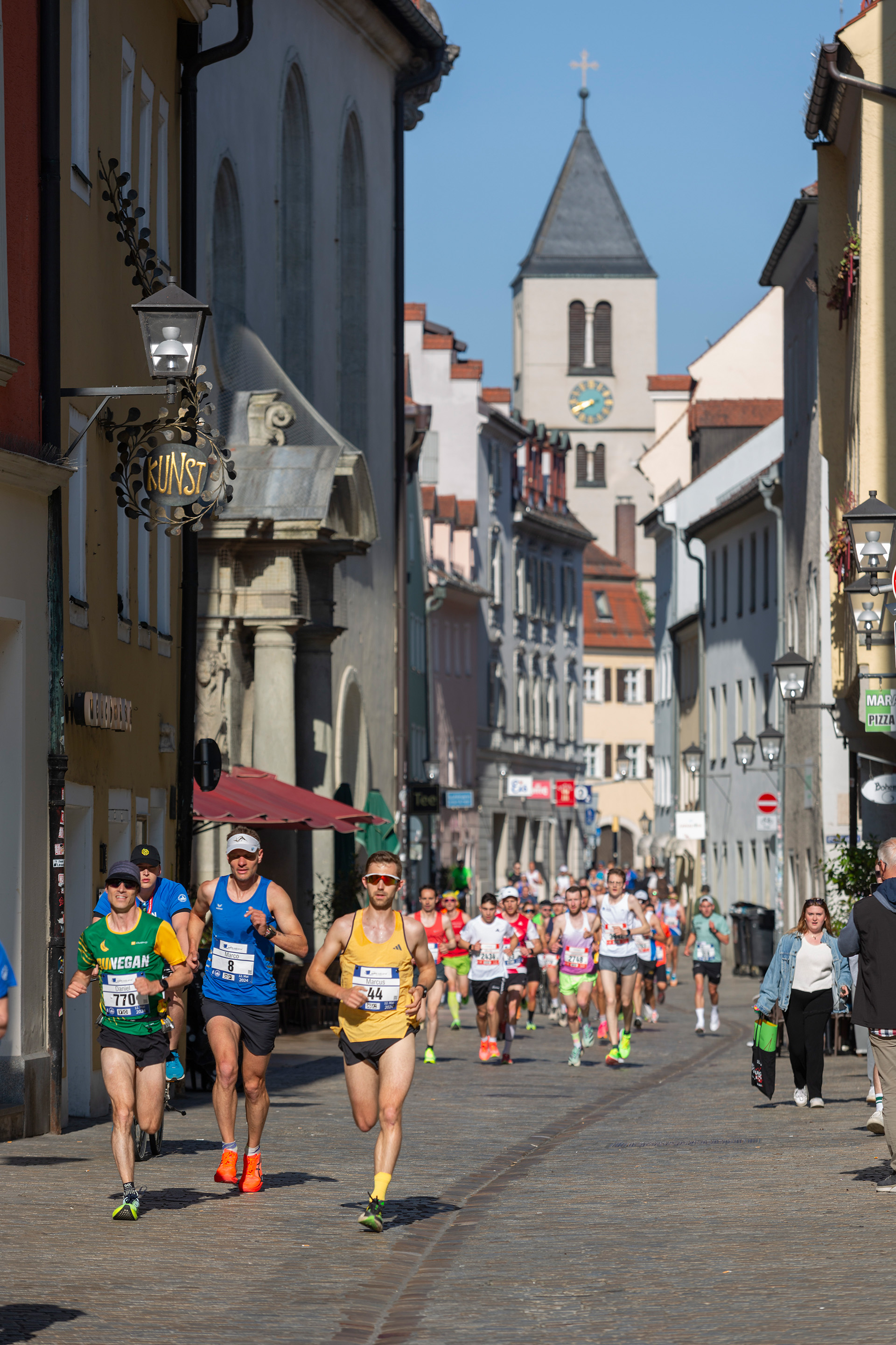 Auch der Minimarathon war mit 2.000 Anmeldungen ausgebucht, am Sonntag hatten sich 5.576 Läufer für die unterschiedlich langen Strecken angemeldet. Die neue Streckenführung in der Altstadt ist bei den Teilnehmern insgesamt gut angekommen. Überall an der Strecke haben die Zuschauer die Sportler angefeuert, die Stimmung war bei diesem Traumwetter natürlich super.