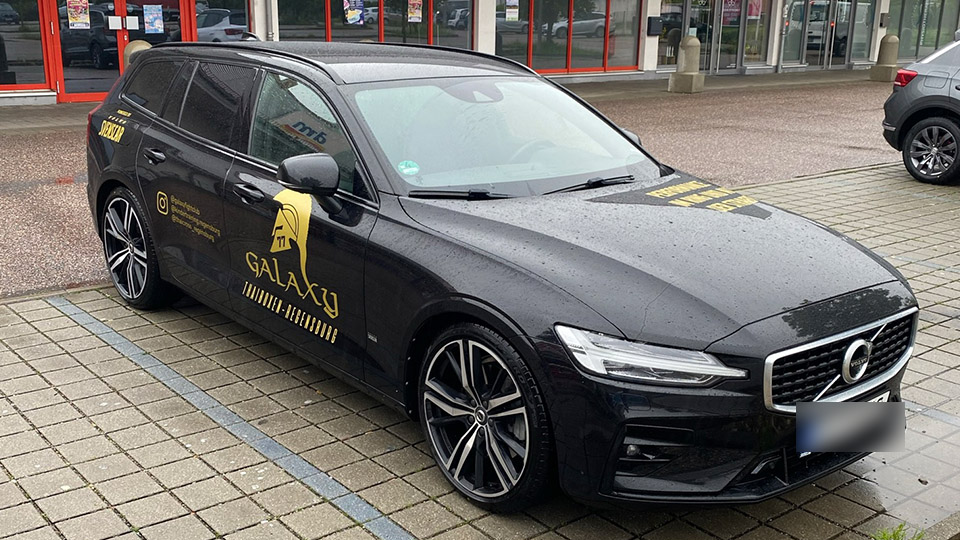 Leander bedankt sich bei Dominik und VOLVO Regensburg für das Sponsern des Volvo V60, der ihn immer sicher an das Ziel für die Wettkämpfe bringt. © Galaxy Gym Regensburg