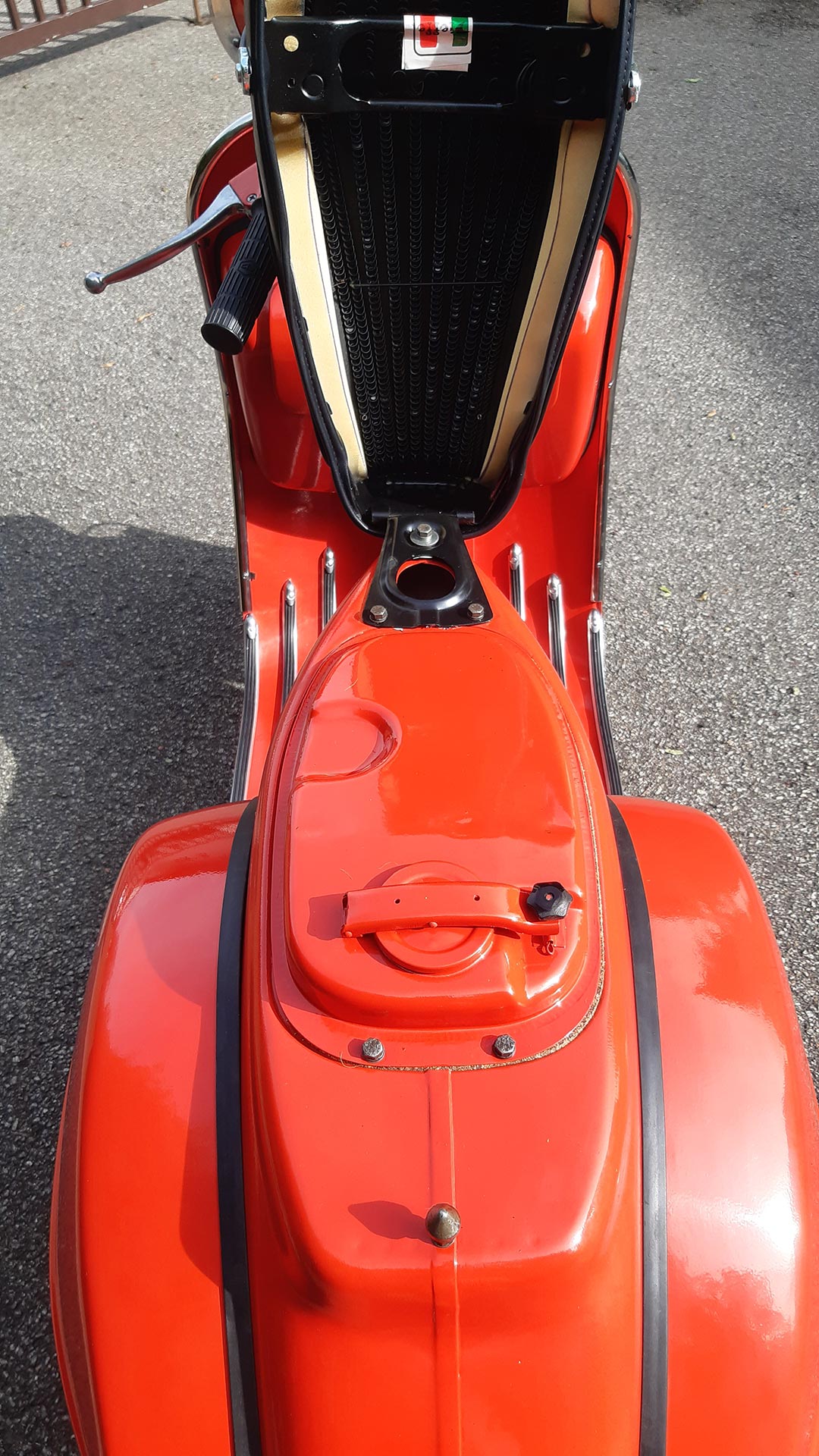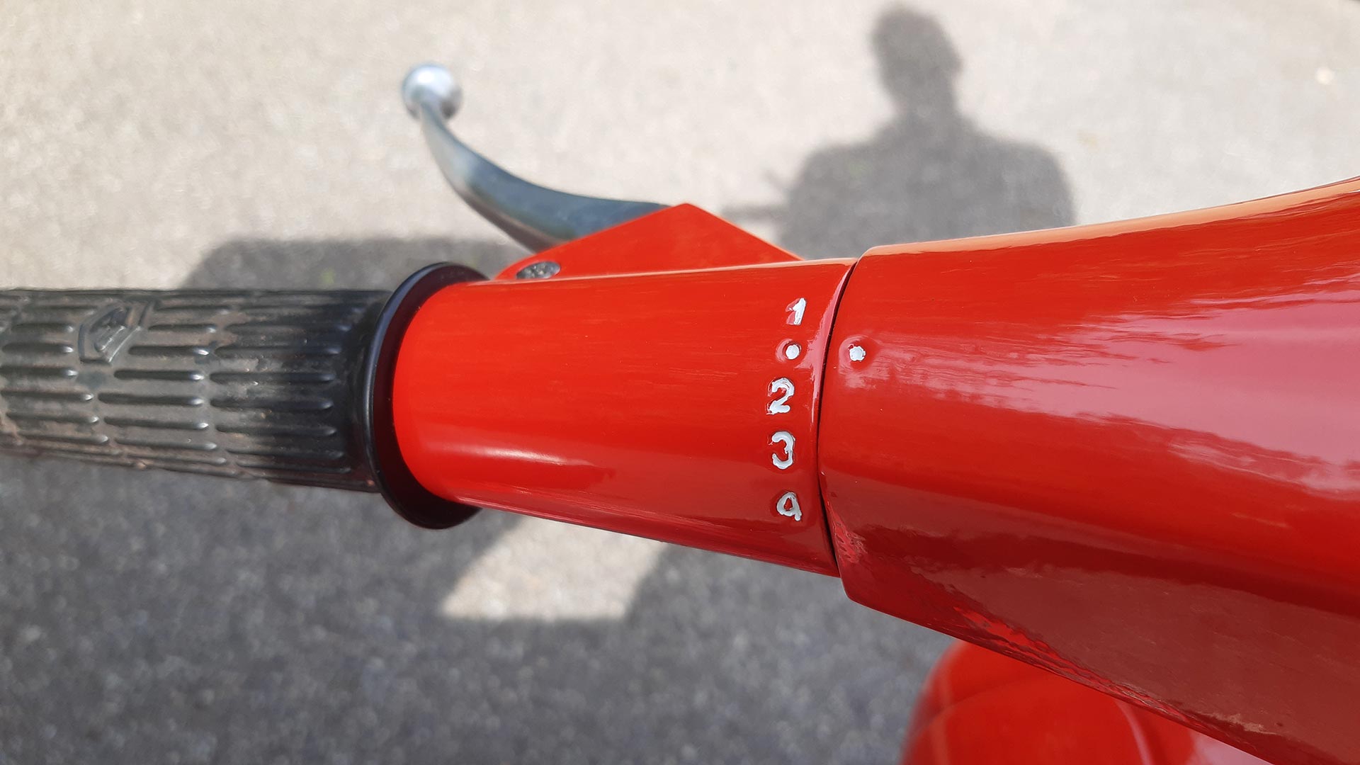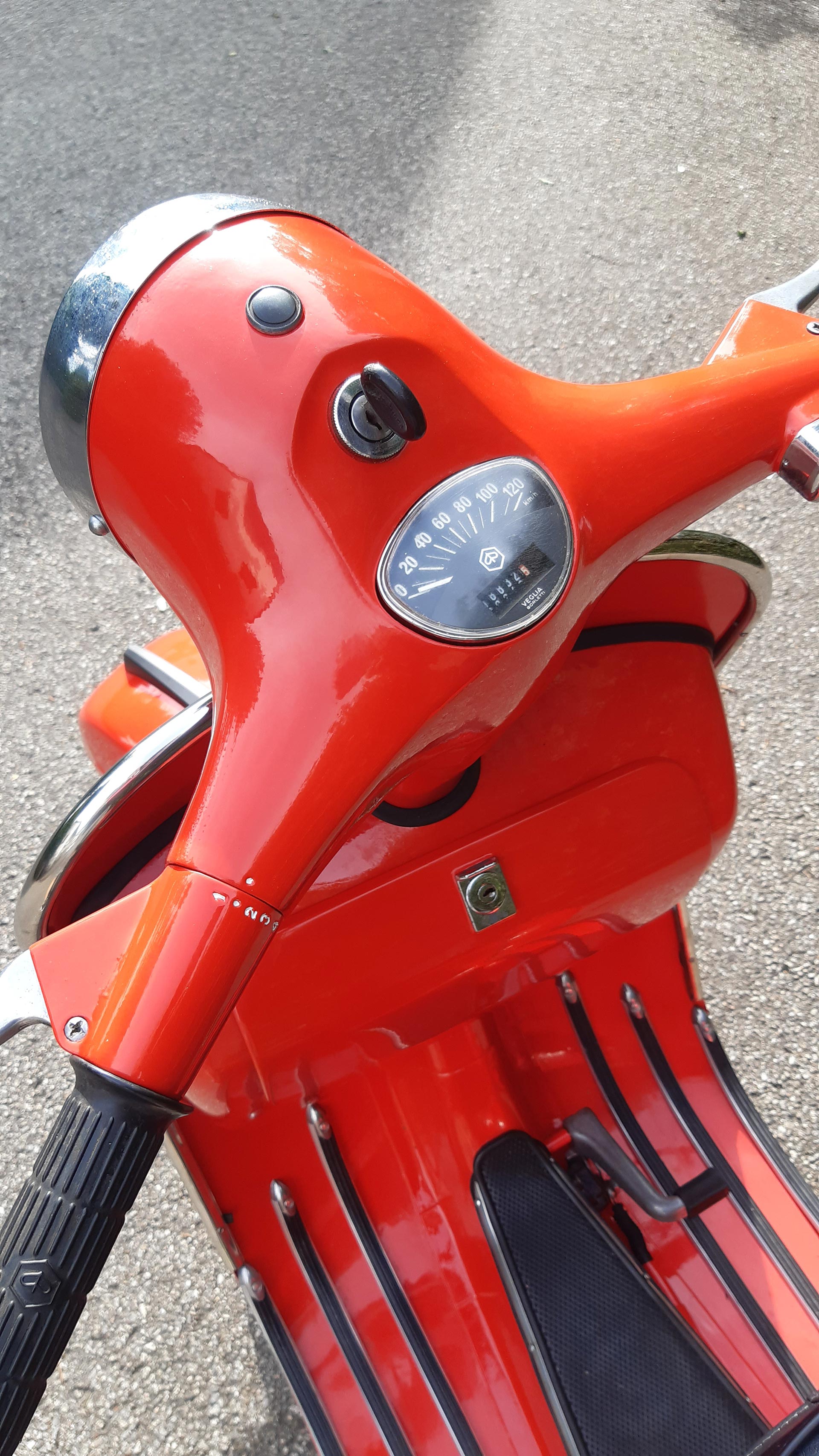 Aber Vespa war mit dem Spitzenmodell noch nicht fertig und setzte, dem Namen gerecht werdend noch eins drauf: die Rally 200. Gebaut von 1972- 1979, mit der Typenbezeichnung VSE1T. Wenn wir an die klassischen Vespas, einschließlich der bis 2000 gebauten PX-Reihe denken, hat nie wieder eine 200er so viel Leistung gehabt. Die Rally 200 verfügt über satte 12,5 PS (P200E, 200PX max. 12 PS) und läuft damit bis zu 116 km/h schnell. Zumindest wenn es nach der Chronik-Fibel des Italieners Giorgio Sarti geht. In Wikipedia findet man 12 PS, im Scooterforum 12,39 PS, auf Vespa Cult 12,24 PS, unsere wird mit einem 12,9 PS Gutachten versehen und mit 9 kW eingetragen... Belassen wir es dabei: die schnellste und beste eben.