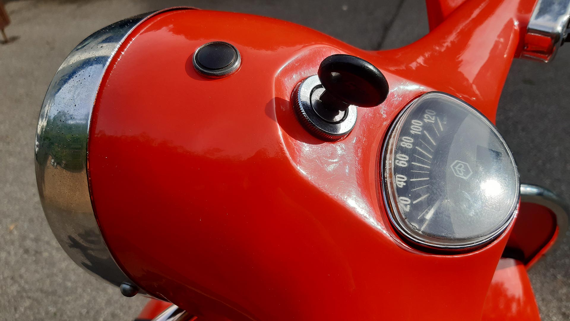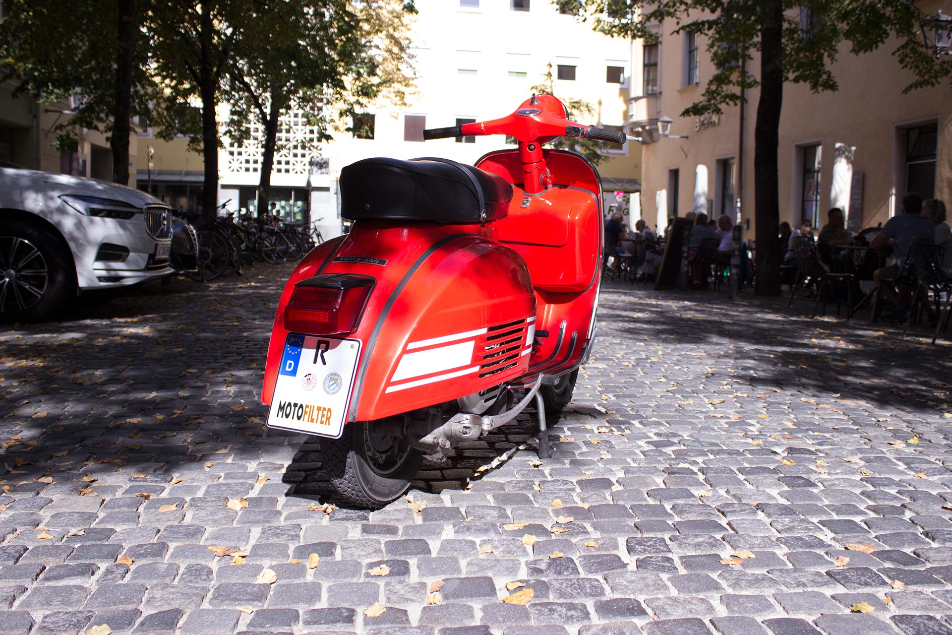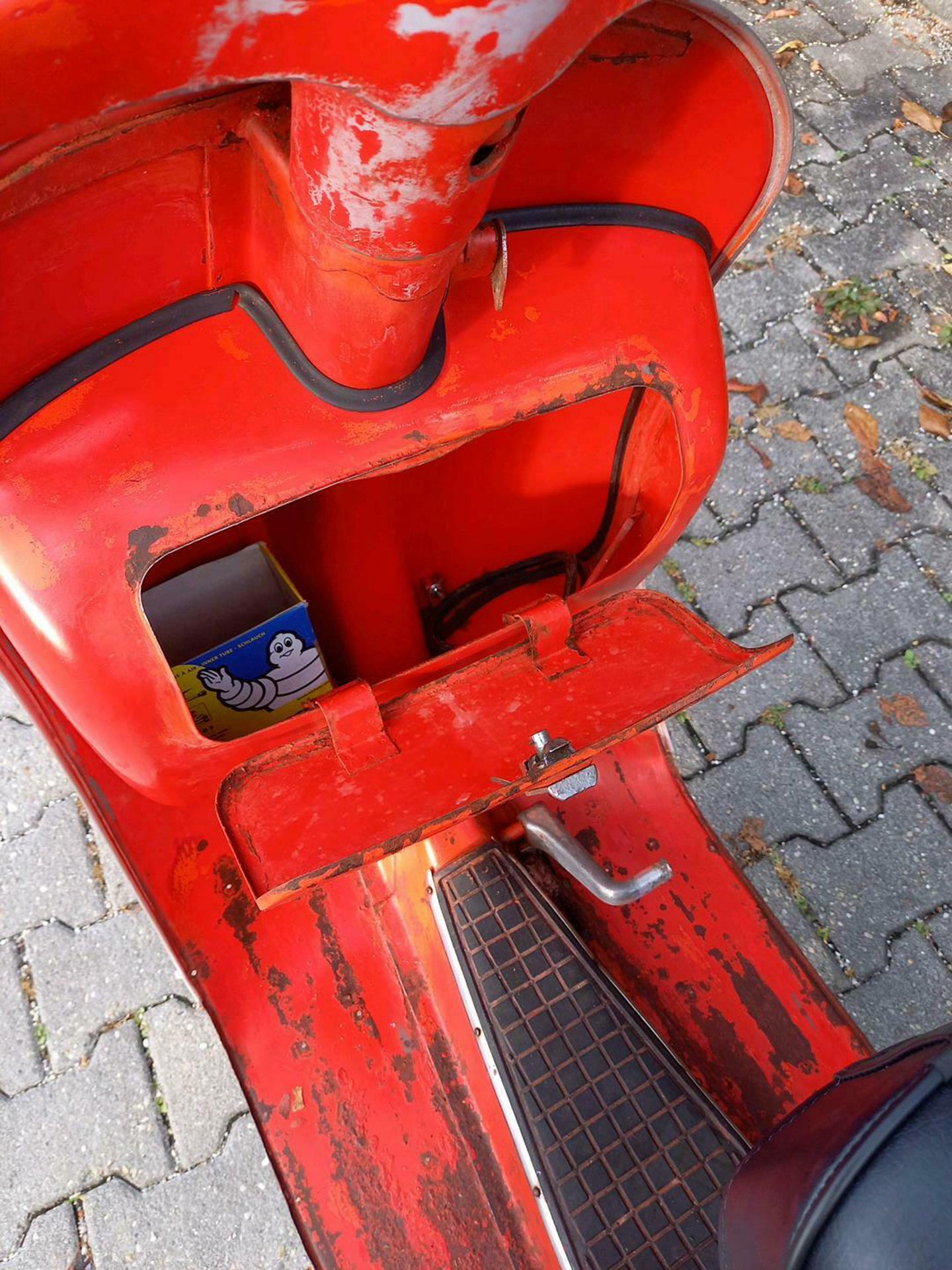 Irgendwann im Spätsommer 2021 haben wir dann doch zartes Interesse bekundet und um eine Suche gebeten. Nach wenigen Monaten war dann auch eine Rally dabei (Auskunft aktuell: seit einem Jahr ist nichts mehr aufzutreiben!). 7.500 Euro waren damals für die 1975 gebaute aufzubringen. Klar, dass der Motor schon aus Zuverlässigkeitsgründen komplett zerlegt werden und neu gelagert werden wollte – ein Spaß für den Feierabend im Winter und bis auf zweischaliges Kurbelwellenlager und besagter interessante Pick-Up Konstruktion für den Zündzeitpunkt ist der Motor „nice to handle“ wie jeder Vespamotor. Dazu kommen Basics wie Stoßdämpfer hinten, Bremsklötze, neue Züge, Reifen, Schläuche, viel Gummi, Trittleisten und viel Kleinzeug. Gut 1.300 Euro an Teilen am Ende, ohne Lack. Die Teileverfügbarkeit ist dafür sehr gut. Wer nachkauft sollte immer genau schauen welchen Quali-Level er einkauft und ob es Veränderungen zum Originalteil gibt. Das sind oft nur Details, aber die machen es eben aus. Wer es als Wertanalage sieht – und die Preise explodieren weiter – sollte genau schauen!