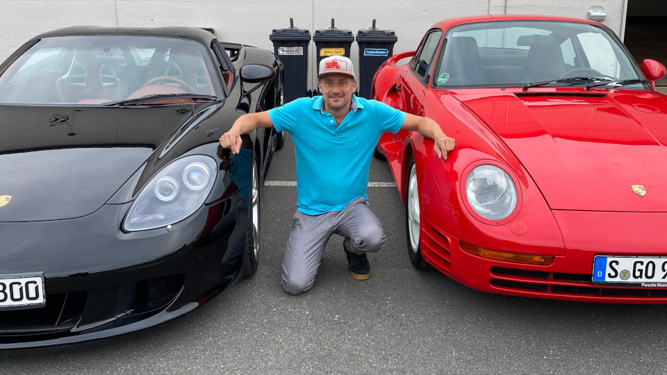…neben dem wahnsinns Fahrwerk. Ich durfte den ja noch vor anderthalb Jahren fahren. Da gab es diese Porsche Sound Nacht und dafür haben wir am Bilsterberg Zuspieler gedreht. Und da hatte ich an einem Tag die Ehre, den Carrera GT vom Porschemuseum nochmal fahren zu dürfen. Und die hatten auch noch einen 959 in der S Variante in Rot dabei. Davon gibt es 27 Stück. Ich bin zu einer Salzsäule erstarrt. Der 959 ist das zweite Auto also, ein Held meiner Jugend, ein unfassbares UFO. Den bin ich dann auch gefahren, mega geil. Das ist ein ganz gutmütiges, weiches Auto. Porsche hat da einen guten Job gemacht und mit der Allraudauslegung extrem dafür gesorgt, dass sich niemand den Kopf abfährt. Selbst wenn du versuchst, ihn zu triezen, dann gibt er die Kraft so auf die Vorderachse, dass du damit keine Zauberdrifts ziehen kannst. Da haben sie wirklich Wert darauf gelegt, dass keiner damit gröbere Scherereien hat. Das kann man ihm deutlich anmerken. Da habe ich mit Walter (Röhrl, Anm. d. Red.) auch darüber gesprochen: Nicht zum Rumblödeln gedacht, sondern so konstruiert, dass jeder damit zu Hause ankommt. Das kann man ja verstehen zu der damaligen Zeit: 450 PS. Heute sind die ja normal, damit bist du ja fast schon der Loser (lacht).