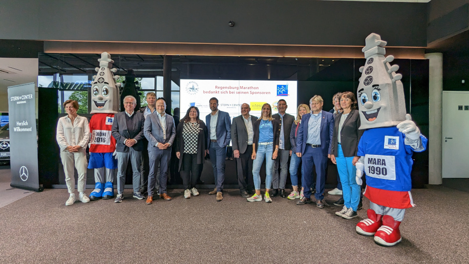 Macher und Unterstützer des 27. Leukämielaufes haben sich versammelt, um Oberbürgermeisterin Gertrud Maltz-Schwarzfischer in ihrer Funktion als Schirmherrin des...