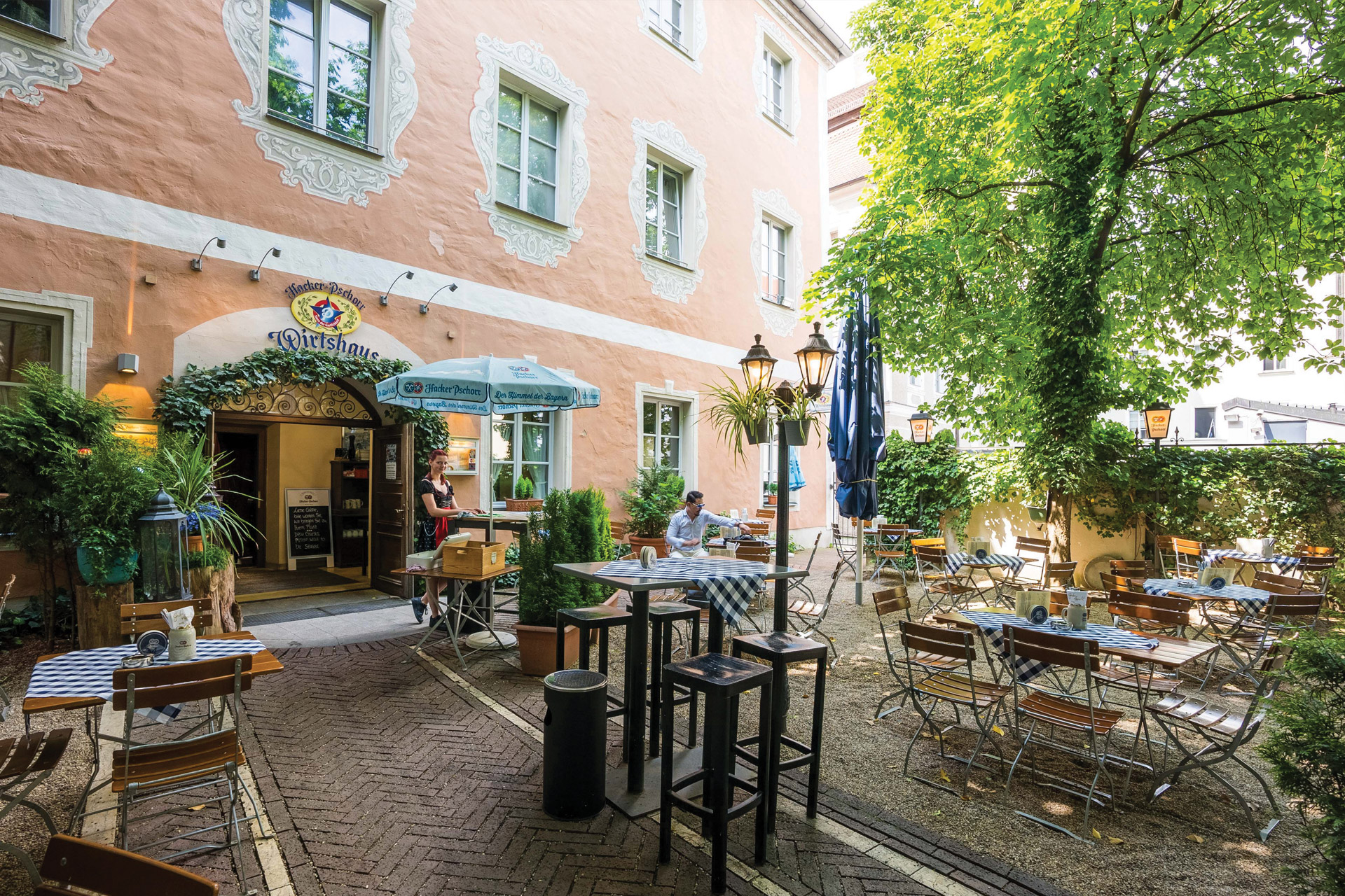 Unser Wirtshaus befindet sich inmitten des historischen Zentrums von Regensburg mit dem vielleicht schönsten Biergarten der Altstadt. Das ehemalige Klostergebäude blickt auf eine 750-jährige Geschichte zurück, der heutige Gastraum wurde 1732 von den Gebrüdern Asam gestaltet. Sein Charme und Flair gelten als Regensburger Rarität. Zum Dom St. Peter sind es lediglich 100 Meter Fußweg.